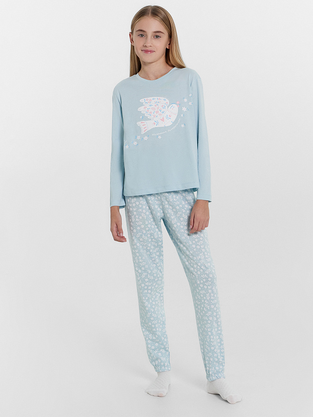 Уютная пижама для девочек из высококачественного хлопка идеально подходит для комфортного отдыха и сна. Модель состоит из джемпера и брюк, которые вместе создают гармоничный и стильный комплект. Круглая горловина и длинные рукава джемпера обеспечивают тепло и уют, а длинные брюки, слегка зауженные к низу, добавляют элегантности. Натуральный хлопковый материал, использованный в этой пижаме, обладает особой мягкостью и приятной текстурой, которая бережно окутывает нежную детскую кожу. Ткань отличается превосходной гигроскопичностью, поддерживая оптимальный микроклимат и предотвращая перегрев. Конструкция пижамы тщательно продумана с учетом особенностей детской анатомии, обеспечивая свободу движений и комфорт во время сна. Свободный крой и эластичный пояс брюк гарантирует максимальную свободу и удобство. Эта пижама представлена в широком размерном и цветовом ряде, что позволяет подобрать идеальный вариант для каждого ребенка.