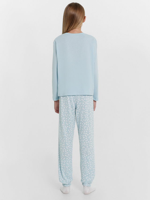 Комплект для девочек (джемпер, брюки) голубой с цветами и голубкой