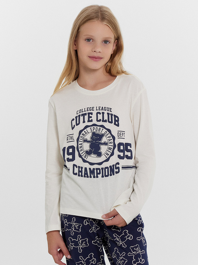 Комплект для девочек (джемпер, брюки) молочно-синий с мишками