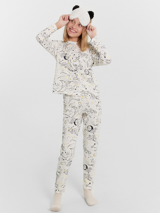Комплект для девочек (джемпер, брюки) молочный с созвездиями