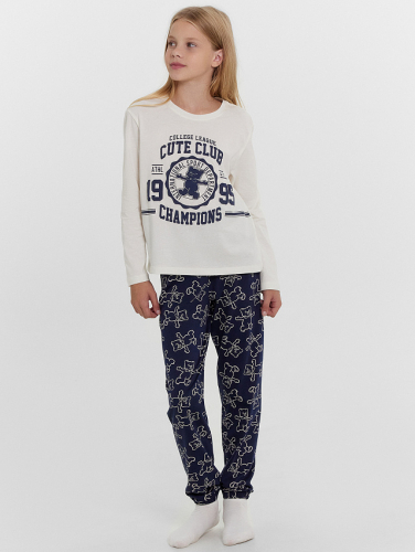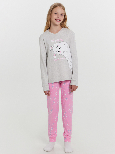 Уютный комплект для девочек, состоящий из джемпера с длинными рукавами и брюк. Джемпер свободного силуэта. Перед и спинка цельнокроеные. Горловина круглой формы из основного полотна. Рукава втачные, низ рукавов с притачными манжетами. Брюки прямые, с притачными манжетами. Пояс с эластичной тесьмой, которая обеспечивает отличную посадку. Стильная и комфортная детская пижама — лучший вариант для прохладного времени года. Широкий размерный ряд, красивые расцветки моделей в линейке. Рекомендуем!