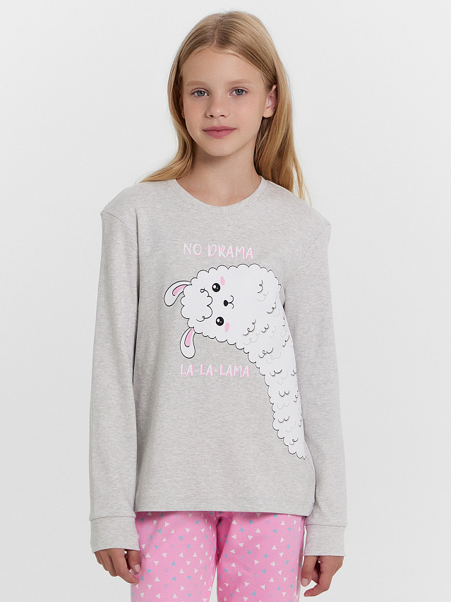 Комплект для девочек (джемпер, брюки) серо-розовый с милой ламой