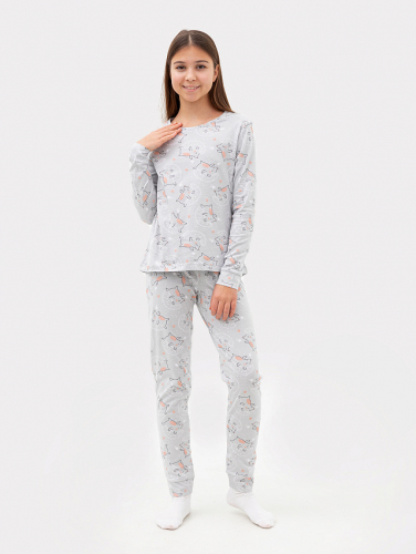Уютный комплект для девочек состоит из джемпера с принтом в виде мишки и надписи "FAMILY CREW DREAM TEAM BELIEVE IN MIRACLES" и стильных брюк. Перед и спинка джемпера цельнокроеные. Вырез горловины круглый. Рукава втачные короткие. Брюки длинные. Пояс цельнокроеный с эластичной тесьмой внутри. Стильная и невероятно комфортная модель имеет оригинальный дизайн. Подойдет для сна, отдыха и домашних дел. Рекомендуем эту пижаму детскую в качестве милого презента для вашего ребенка!
