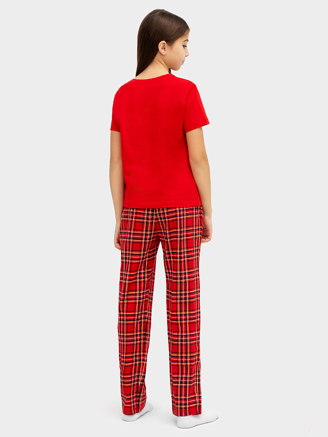 Комплект для девочек (джемпер, брюки) вишнево-красный в клетку