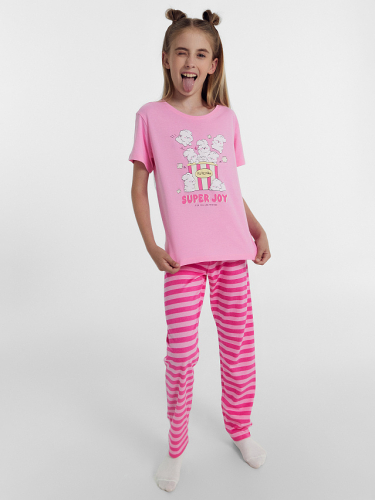 Комплект для девочек (футболка, брюки) розовый в розовую полоску
