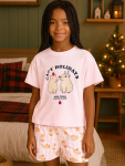 Мягкие гипоаллергенные материалы делают этот комплект особенно комфортным для детской кожи. Нежный цвет с веселым принтом понравится любой маленькой моднице, а практичный крой обеспечит удобство при ежедневном использовании.