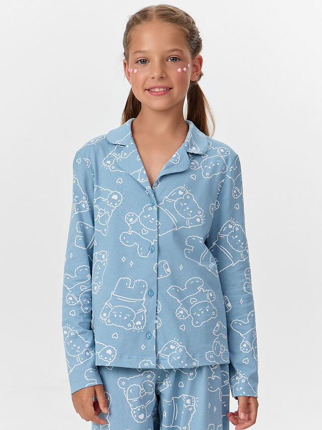 Подарите своему ребенку комфорт и очарование с домашним комплектом, созданным для приятного отдыха и активных домашних игр. В комплект входят рубашка и брюки, выполненные из мягкой хлопковой кулирки — натурального материала, который нежно заботится о коже и обеспечивает отличную воздухопроницаемость. Рубашка прямого силуэта с отложным воротником выглядит аккуратно и стильно. Спущенное плечо и длинные рукава добавляют свободы движений, а центральная застежка на пуговицы делает модель удобной и практичной. Брюки слегка расширены к низу, что придает образу легкость и современность. Эластичный пояс мягко фиксирует посадку, не сдавливая животик, а низ брюк аккуратно застрочен швом в подгибку. Этот комплект — идеальный выбор для дома: он сочетает в себе комфорт, качество и милый стиль. Подходит для отдыха, игр и уютных вечеров.