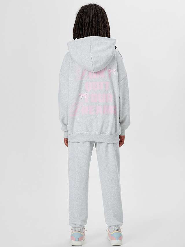 Костюм для девочек из мягкого хлопка — состоит из худи с капюшоном и брюк прямого кроя, выполненных из хлопка, который обеспечивает нежность к коже, воздухообмен и комфорт.