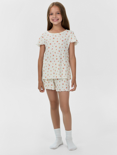 Комплект домашний для девочек молочный с принтом и надписью "Fearless team"