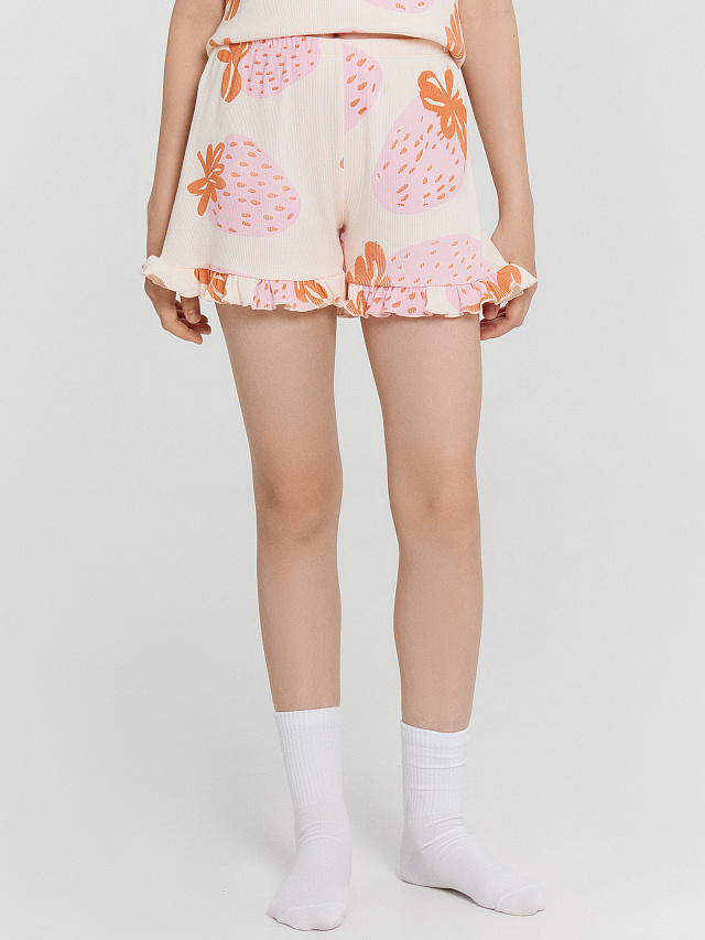 Домашний комплект для девочек — уютный и стильный выбор для комфортного отдыха и сна. Футболка прямого силуэта с круглой горловиной обеспечивает удобную посадку и свободу движений, а ее лаконичный крой делает модель универсальной. Шорты прямого силуэта с эластичной талией мягко прилегают к фигуре, обеспечивая комфорт в течение всего дня. А нежная рюша по нижнему краю добавляет очаровательный акцент, делая комплект более изящным. Выполненный из натурального хлопка, комплект приятен к коже, воздухопроницаем и обеспечивает уютные ощущения. Прекрасный вариант для домашнего гардероба, сочетающий удобство, стиль и нежные детали!