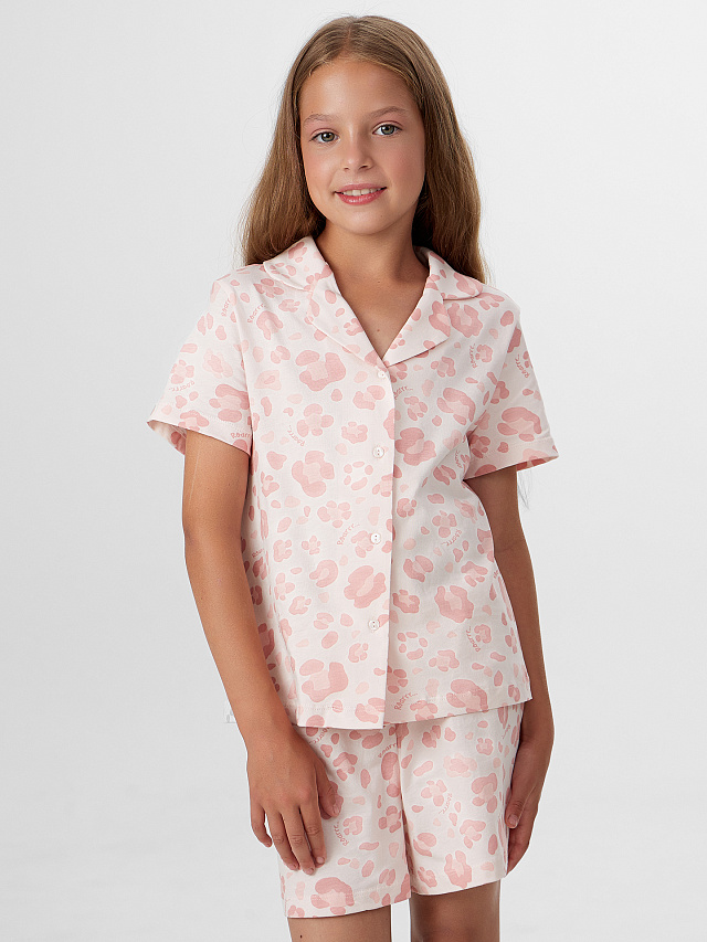 Комплект домашний для девочек с леопардовым принтом — это яркий и комфортный ансамбль для повседневной носки. Набор состоит из рубашки и шорт, выполненных из мягкого дышащего материала. Рубашка прямого силуэта с отложным воротником и спущенным плечом обеспечивает свободу движений. Короткие рукава не сковывают активность, а застежка на пуговицы добавляет удобства при использовании.