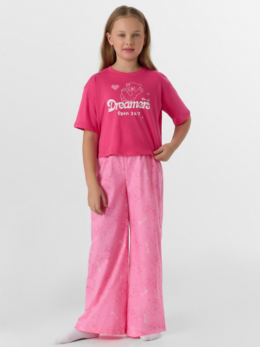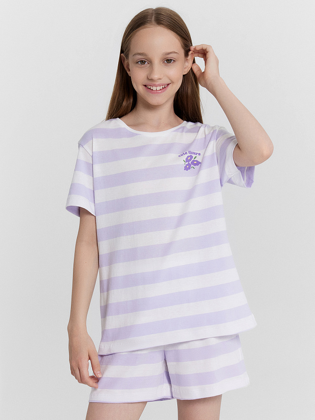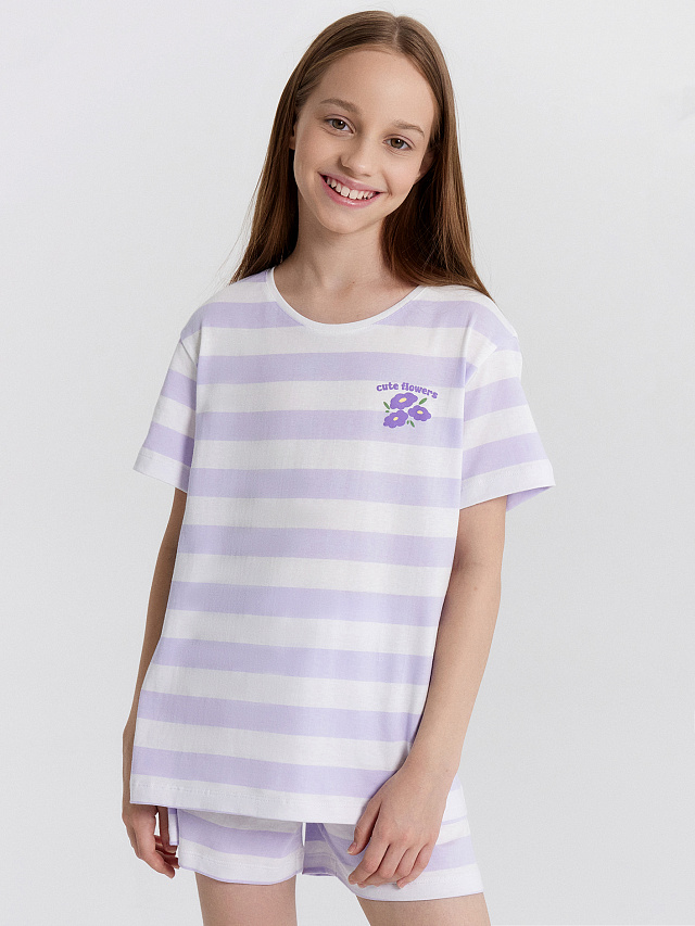 Пижама для девочек — идеальное сочетание комфорта и легкости для спокойного сна. Футболка свободного кроя с круглой горловиной и короткими рукавами обеспечивает удобную посадку, позволяя двигаться без ограничений. Она не сковывает движения и дарит ощущение мягкости благодаря натуральному материалу. Шорты длиной до колен с эластичным поясом мягко прилегают к телу, гарантируя комфорт и свободу движений. Их свободный крой делает пижаму универсальным вариантом для теплых ночей и домашнего отдыха. Выполненный из трикотажной кулирки комплект приятен к коже, воздухопроницаем и обеспечивает уютную атмосферу для сна. Отличный выбор для спокойных ночей, дарящий мягкость, удобство и приятные ощущения!