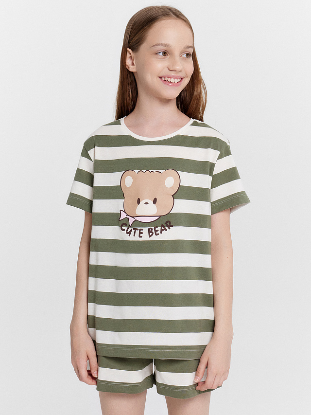 Комплект домашний для девочек в полоску с принтом "cute bear"