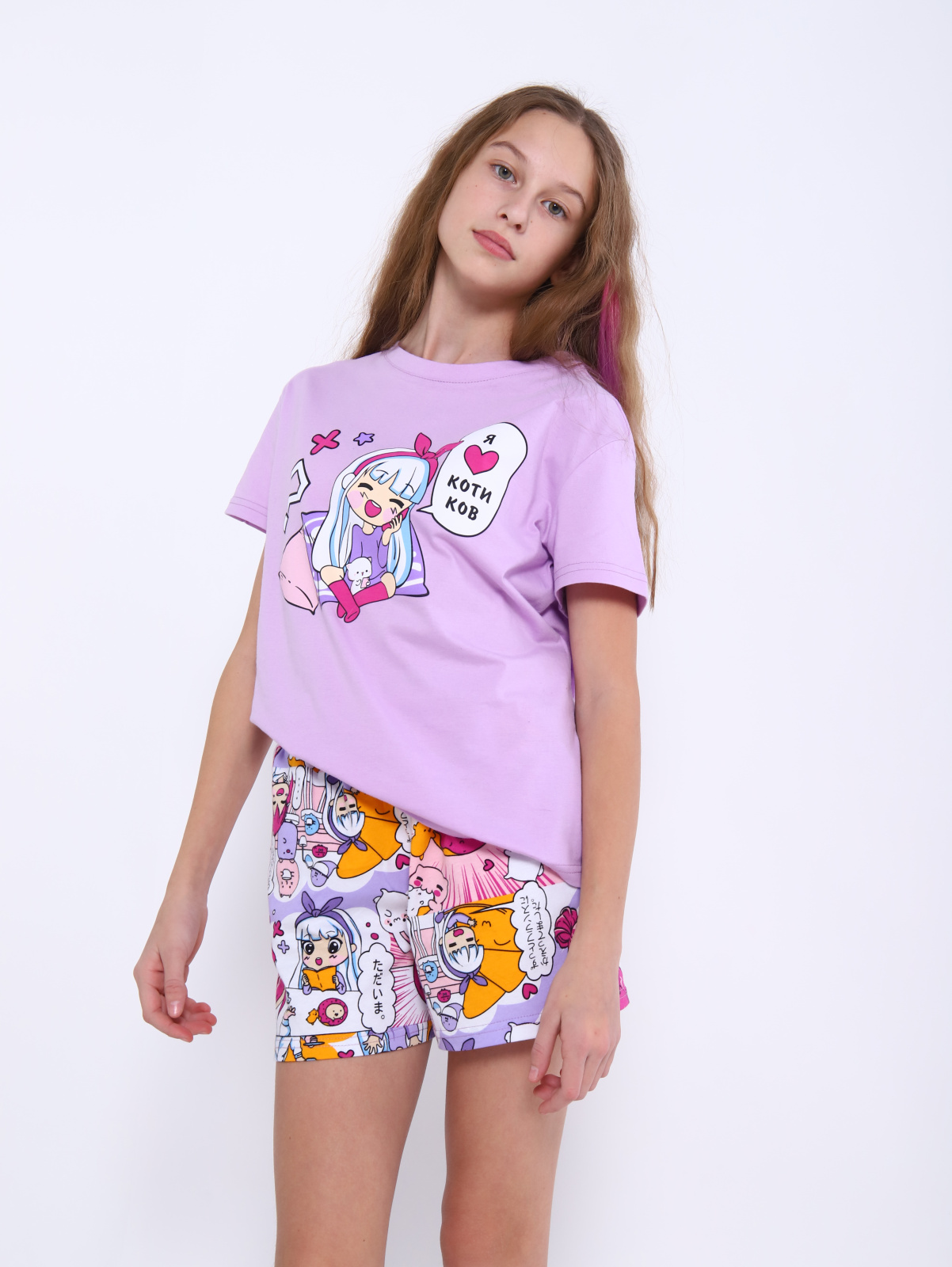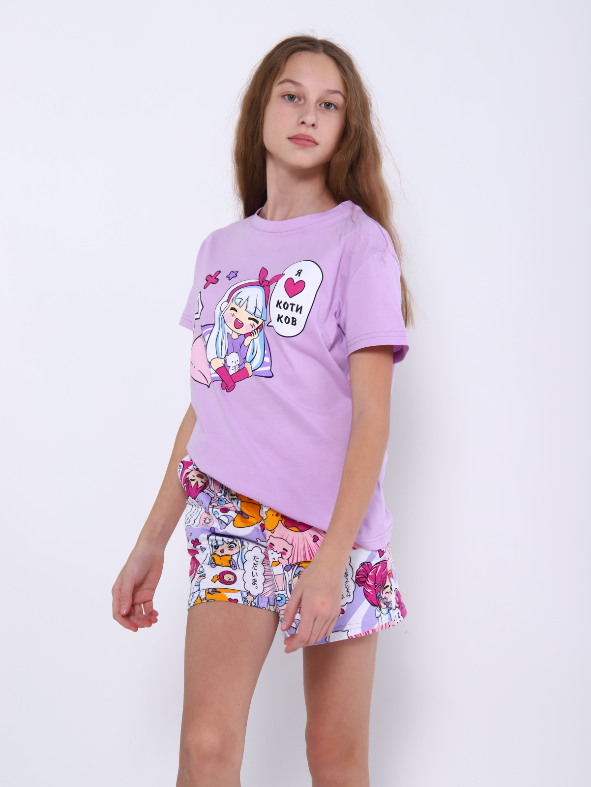Детская яркая пижама из коллекции аниме.  Яркие комплекты для девочек включают футболку и шортики с красивым принтом. Костюмы сшиты  из натурального хлопкового трикотажа.  Мягкая и нежная  пижамка нравится маленьким модницам. Отличный выбор для вечернего отдыха и ночного сна. Футболочка с коротким рукавом и шорты на мягкой резинке с карманами. Стильный образ для фотосессии или домашней пижамной вечеринки с подружками в этом домашнем комплекте гарантирован.  Легкий комплект из 100% мягкого хлопка идеально сидит на фигуре. Подойдёт для вечернего семейного отдыха и домашних дел. Это современная красивая и удобная одежда высокого качества.  Домашний костюм - двойка подойдет для теплых летних и дней. В нем можно смело отправляться на прогулку или на пляж. Это универсальный наряд. Он идеально впишется в образ юной курортницы. Его можно смело брать в поездку на отдых к морю или в детский лагерь. В летнем детском костюме двойке можно заниматься активными играми на свежем воздухе. Нарядная пижамка с  свободными шортиками  станет секретом крепкого сна вашего ребенка! Размерная сетка включает маленькие и большие размеры, позволяя подобрать костюмчик для высоких, невысоких или полных маленьких модниц с разными особенностями фигуры и роста. Подарите дочке или внучке пижаму с модным принтом аниме! Классный наряд для дома и отдыха российского производства, обеспечивает комфорт и свободу движения.  Он поможет повседневно оставаться элегантной даже во время отдыха. Крутой комплект из кофты и шорт будет актуален весной и летом, осенью и в зимние месяцы. Это базовое приобретение для домашнего гардероба ребенка. Модная пижама в молодежном стиле – это популярный выбор для современных девчонок, которые в тренде!