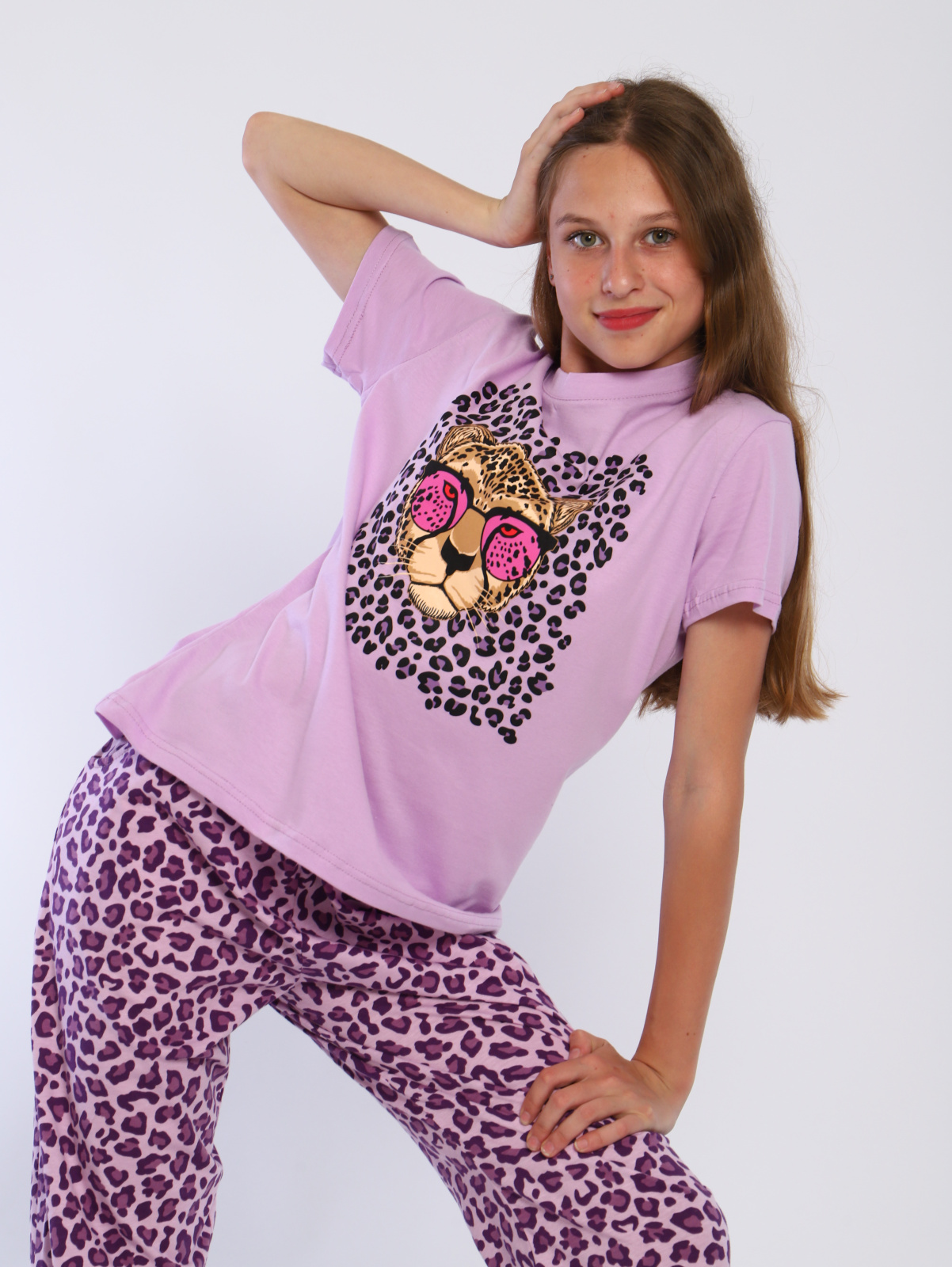 Комплект для девочек-подростков. Самое беспроигрышное сочетание этого лета. Подростковый комплект с рисунком леопарда сшит из 100% хлопка.