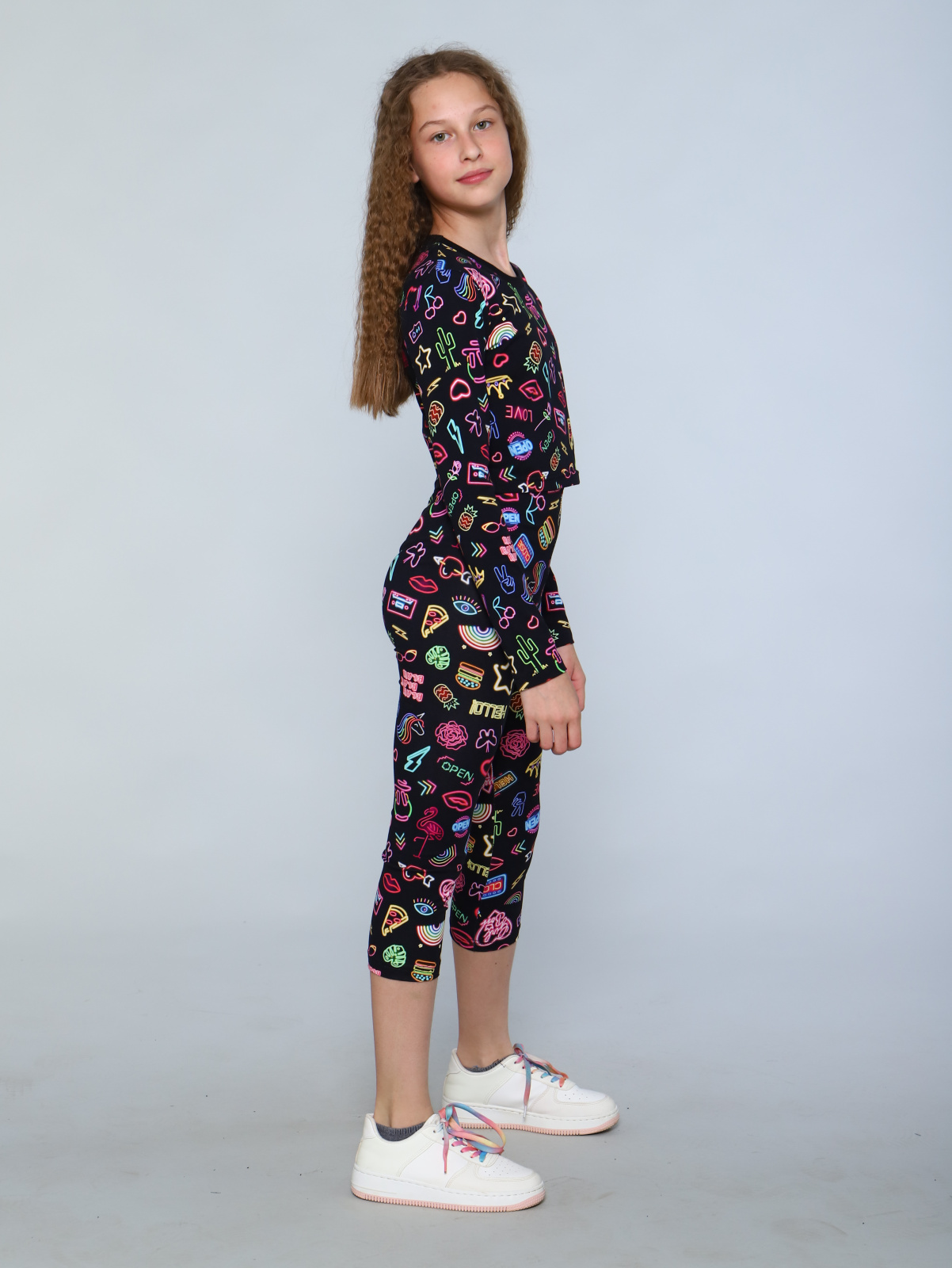 Подростковый костюм сшит из хлопковой трикотажной ткани с добавлением эластана с ярким рисунком.