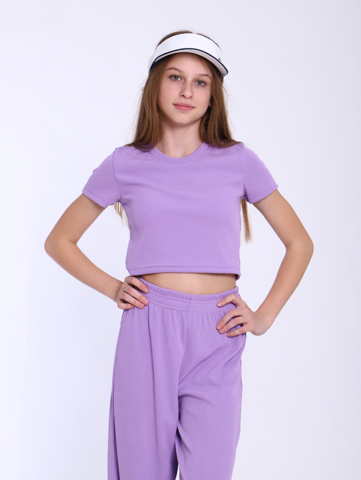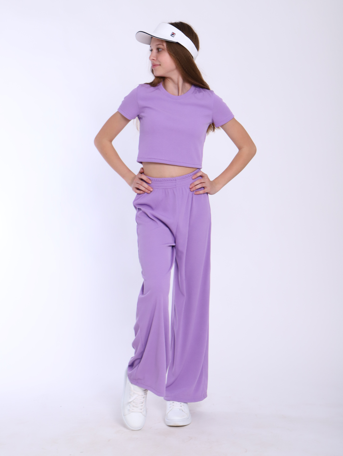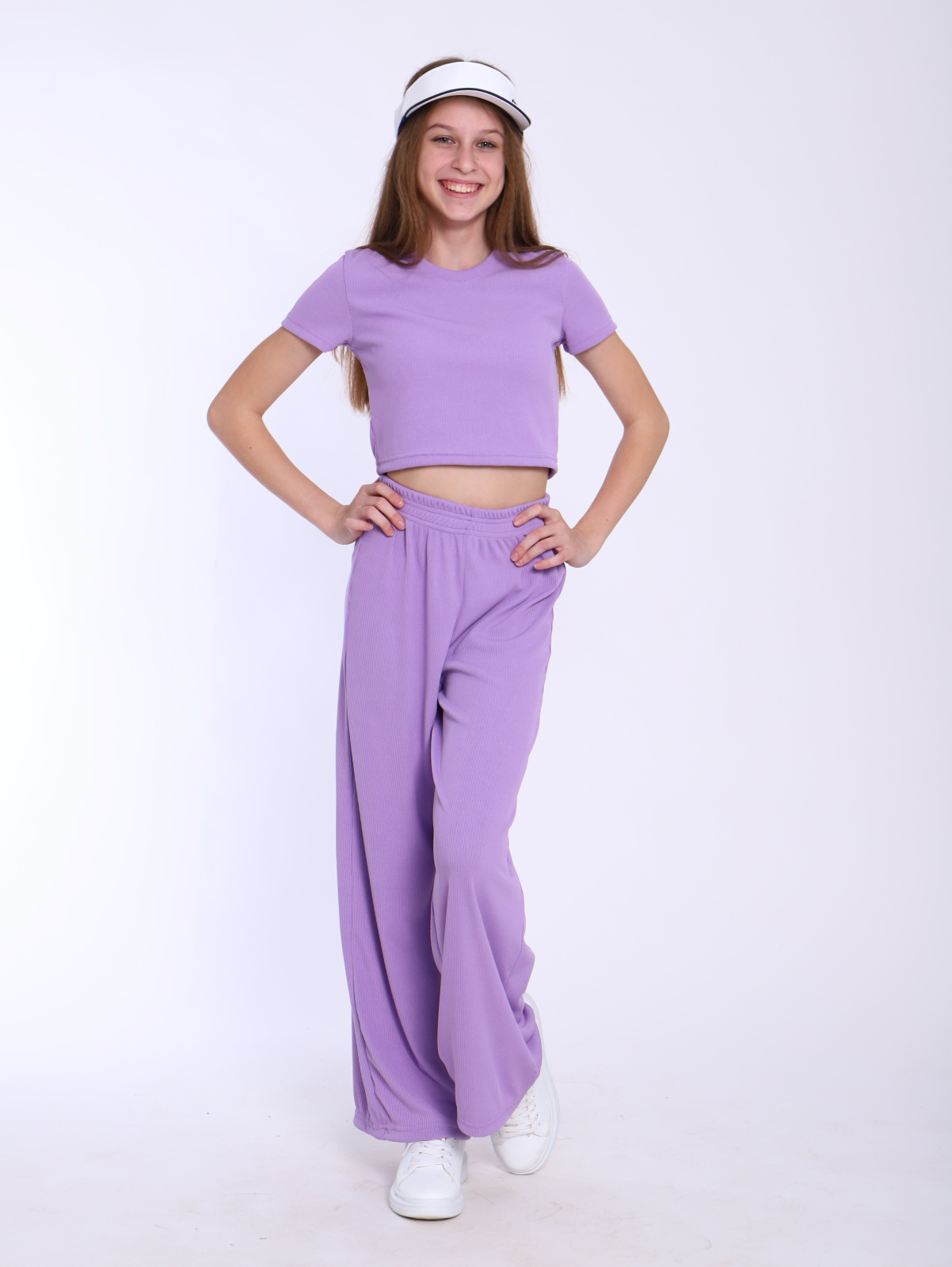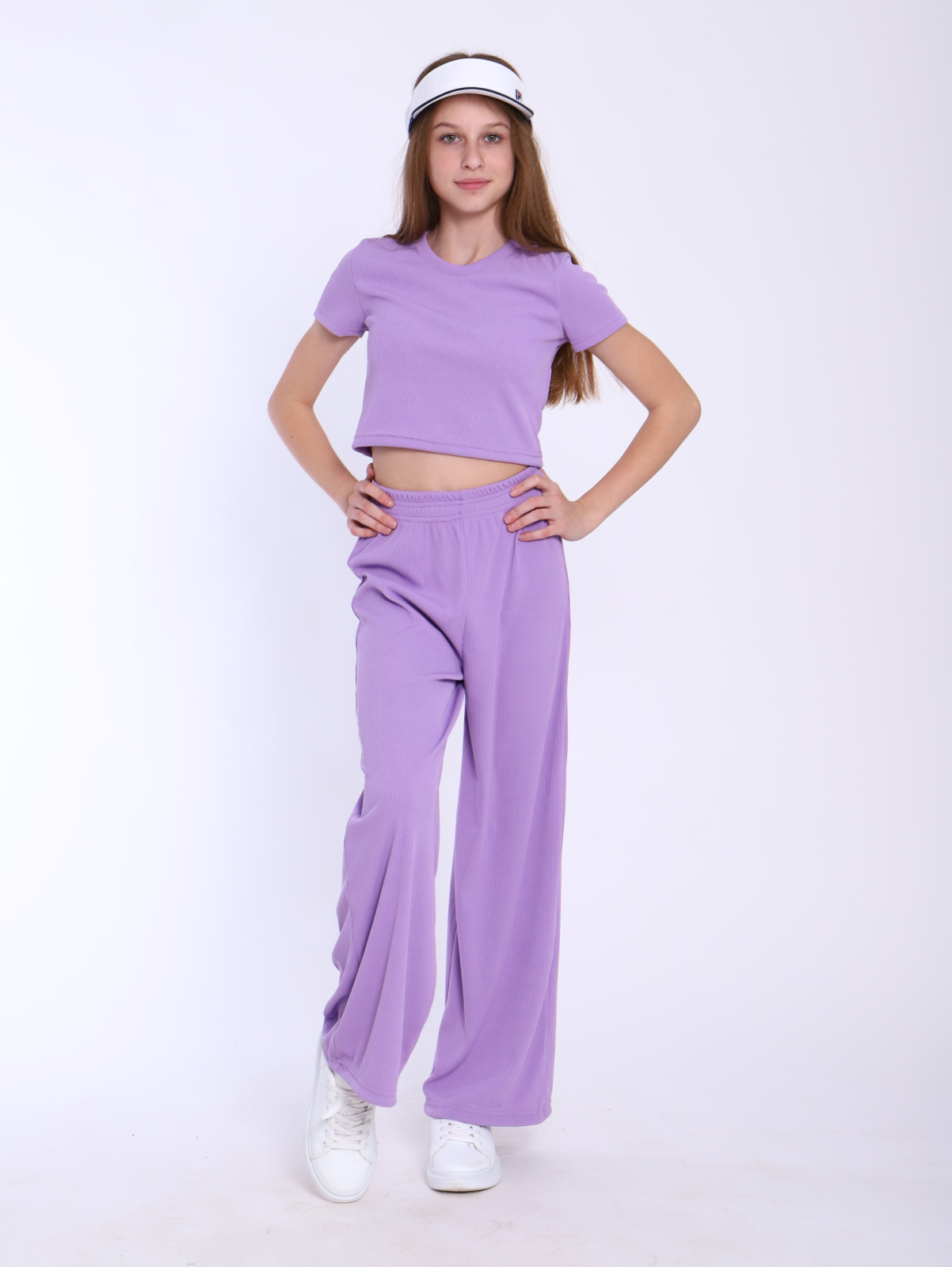 Универсальный подростковый комплект для девочек летний. Выполнен из трендовой трикотажного материала " лапша ". Фактура материала в полоску визуально вытягивает силуэт и подчеркивает линии фигуры. Домашний костюм в рубчик не колется, не мнётся и не вытягивается в коленях сохраняя форму весь период использования. Брючный комплект двойка выполнен в свободном стиле оверсайз oversize. Модные широкие брюки палаццо имеют завышенную талию. Пояс брюк кюлотов мягкий и эластичный на резинке. Уютный спортивный костюм лапша - прекрасно подойдет в качестве креативного образа на работу в офис. Изысканный комфортный комплект детской одежды не стесняет движения. В комплекте летнем удобно заниматься активными спортивными играми, заниматься спортом, фитнесом, танцами, йогой. Яркий летний комплект идеально подходит для вечерних встреч с друзьями, путешествий, отпуска к морю, детского лагеря, и в качестве стильной домашней одежды. Легкий модный комплект включает в себя облегающую укороченную футболка топ. В комплекте удобно делать домашние дела. Повседневно двойку можно носить и в кино и в игровой центр весной или летом, ранней осенью. Летний наряд oversize можно надеть в школу на выпускной, на работу, в институт или использовать в качестве деловой офисной одежды на каждый день. Благодаря своей универсальности он идеально дополнит домашний гардероб. Для тренировок в зале и фитнеса - это тоже отличный вариант. Элегантные широкие брюки имеют свободный покрой, завышенную посадку и подходят для любого типа фигуры и роста - для высоких и невысоких девушек.