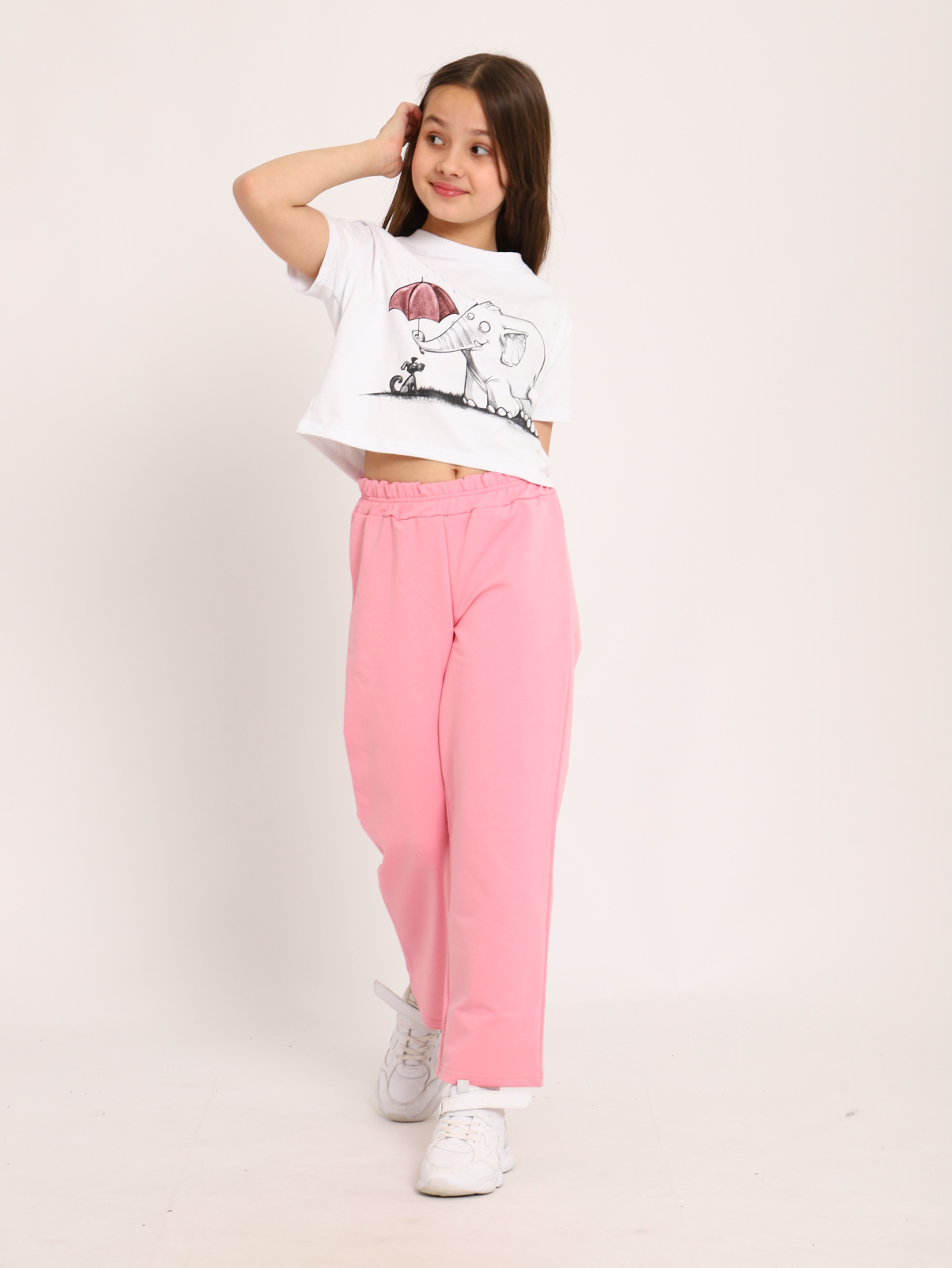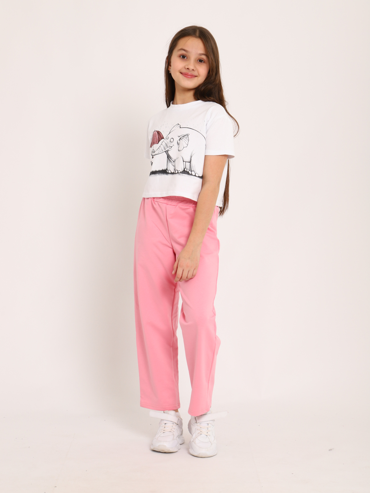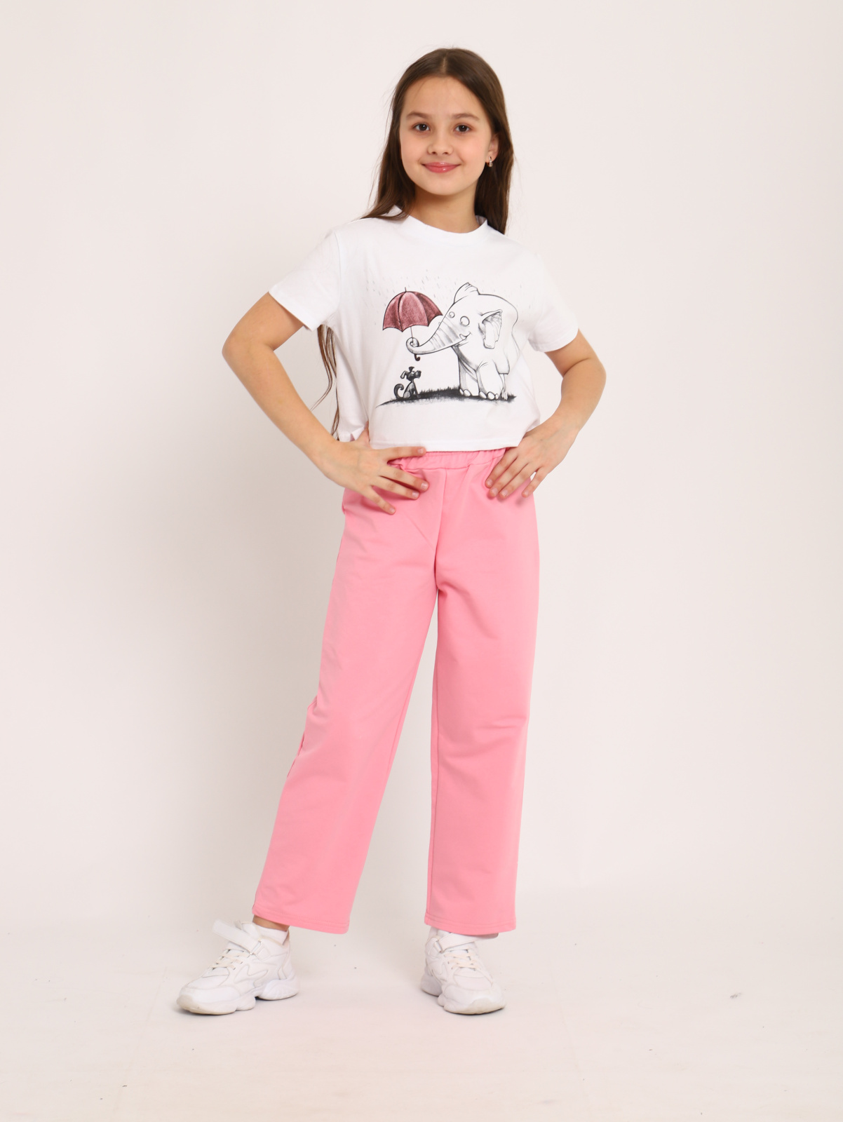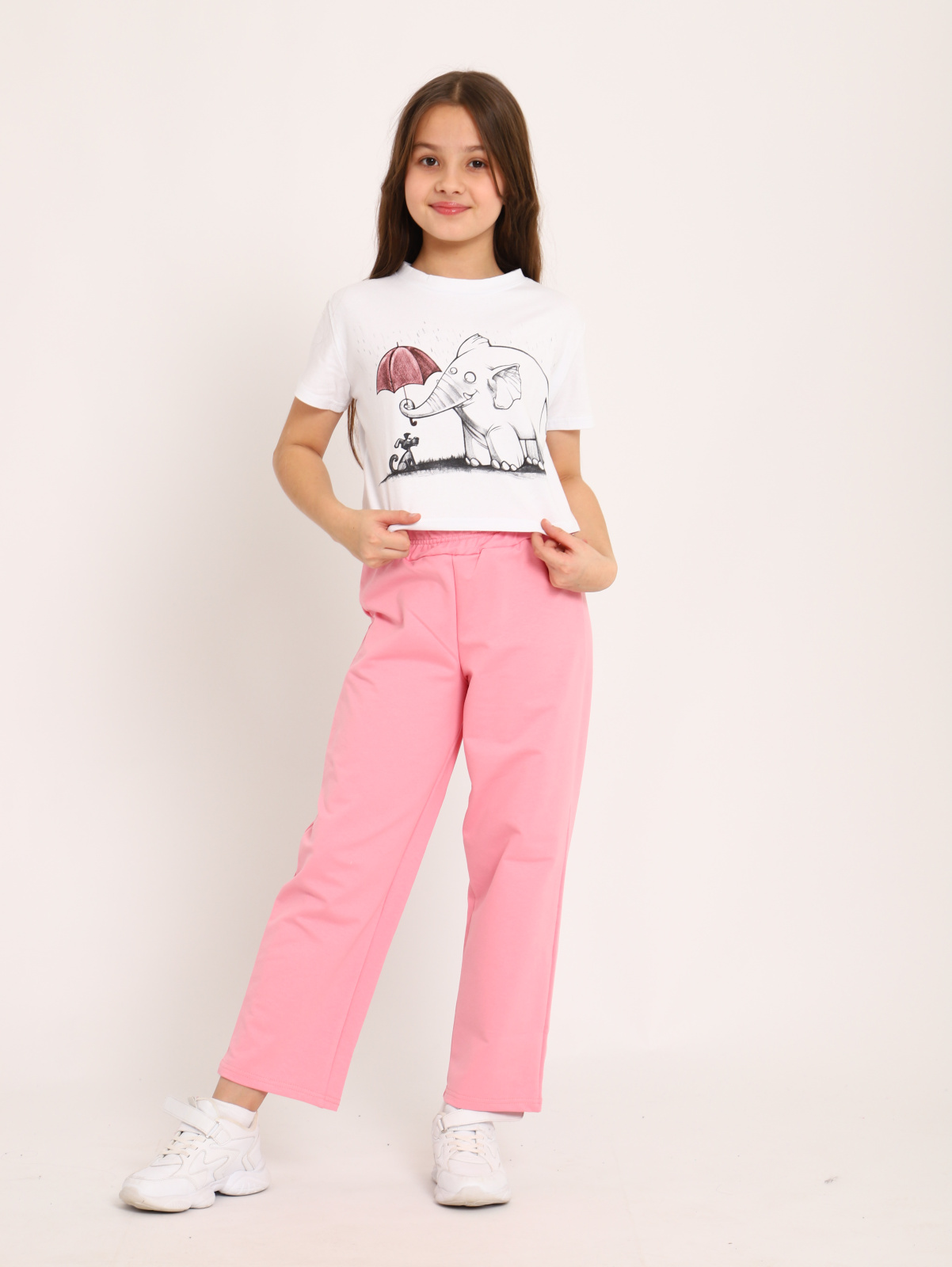 Подростковый костюм с однотонными брюками и футболкой с стильным ярким принтом, сшит из трикотажа с хлопком, добавлением лайкры, приятный к телу.