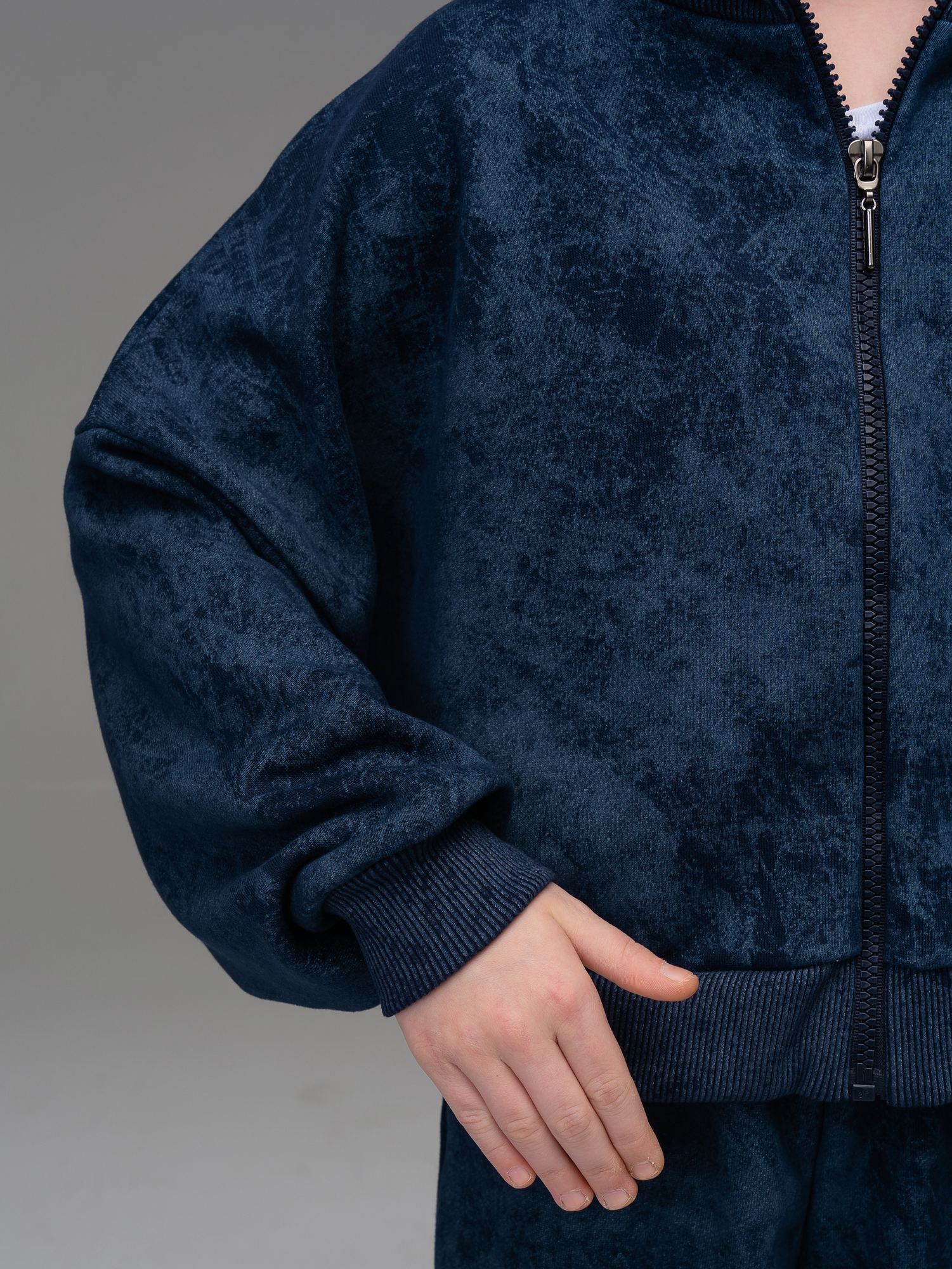 Костюм из футера(3х нитка) темно-синего цвета для девочки. От российского производителя "Looklie". Спортивный костюм выполнен из дышащего хлопкового футера 3-х нитки премиального качества Пенье, с содержанием хлопка более 95%. Детский костюм состоит из: толстовки на молнии с длинными рукавами и свободных брюк. На брюках имеются удобные карманы в боковых швах, а пояс штанов на мягкой эластичной резинке, которая не будет передавливать животик ребенка. Низ детских брюк собран на резинку. Толстовка свободного силуэта с объемными рукавами на манжете создает ощущение комфорта и легкости. Кофта для девочки имеет молнию, что делает её удобной в носке и подходящей на любую погоду. Манжеты на рукавах обеспечивают надежное прилегание и защищают от проникновения ветра. Ткань костюма не садится после стирки, не покрывается катышками. В нашем костюме Ваш ребенок будет выглядеть стильно, он позволит ему проявить свою энергию и самовыражение.