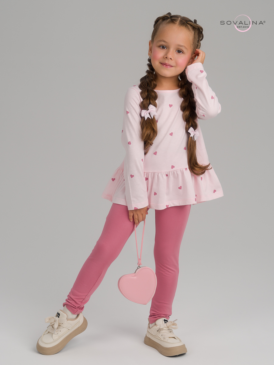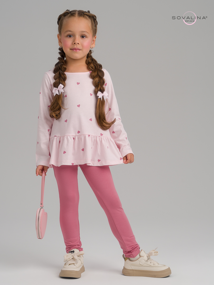 Базовый комплект двойка TM SOVAlina для маленьких девочек, который позволит им чувствовать себя стильно и комфортно в любое время года, включая весенний и летний период. В комплект входит свободный красивый топ с принтом и длинными рукавами и леггинсы. Детская стильная туника подходит для тренировок, фотосессии и садика. Лосины обладают приталенным кроем. Эластичная ткань брюк и вшитая в пояс резинка создают комфорт и свободу в активностях ребенка. Костюмчик изготовлен из высококачественного трикотажа, он хлопковый и легкий - идеальный выбор для активных игр в саду или домашняя пижама для детей. Девочка может использовать этот комплект для фитнеса и спорта, как тренировочный или танцевальный. Элементы костюма можно носить как вместе, так и по отдельности.