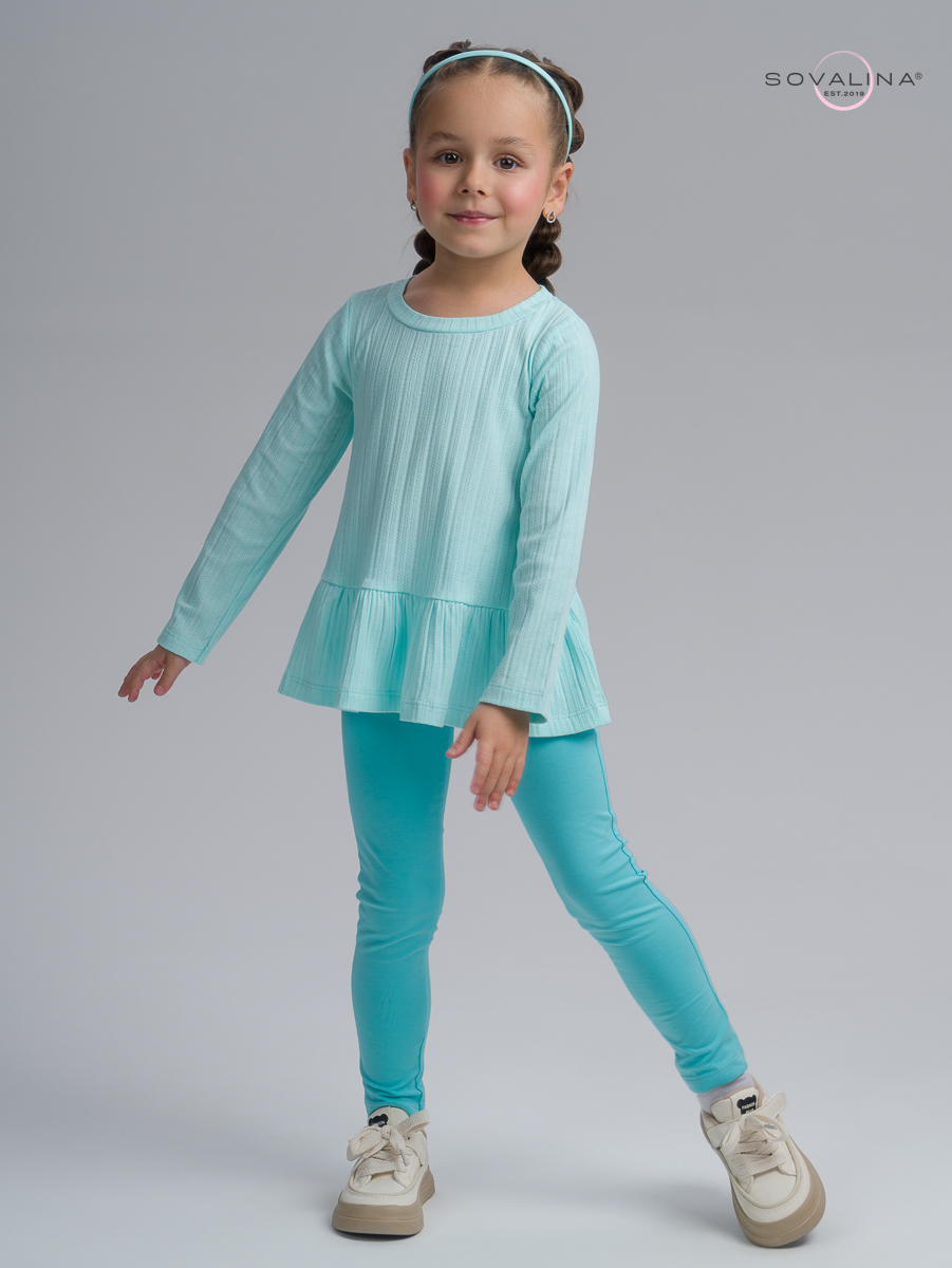 Яркий трикотажный костюм для девочки ТМ SOVAlina. Включает в себя тунику с баской из эластичной ткани "лапша - косичка". Материал плотный, непрозрачный. А так же в комплект входят однотонные лосины на резинке, которая не давит на поясе. Облегченный дышащий материал высокого качества из хлопка в рубчик, обеспечивает максимальный комфорт для ребенка. У комплекта отсутствуют застежки, горловина лонга тянется, что удобно для самостоятельных малышей. Детский легкий костюм двойка с длинным рукавом подойдет для летних и весенних прогулок. Нарядный и красивый костюмчик с лонгсливом в полосочку будет отличным выбором на осенний утренник и посещения детского сада. Кофту лапша и штаны можно носить как вместе так и по отдельности с другими вещами, создавая модные и стильные комплекты одежды на весну и прохладное лето.