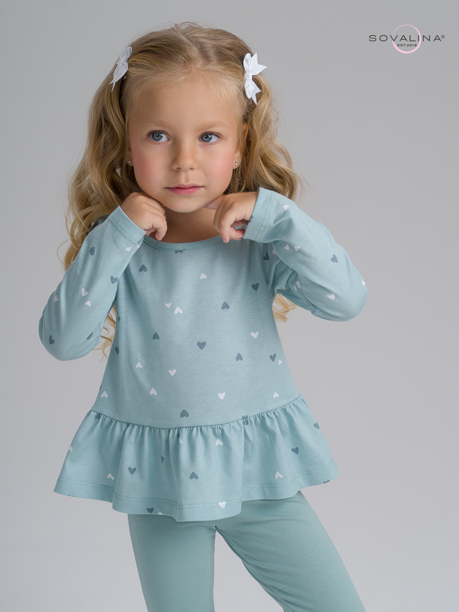 Яркий трикотажный костюм для девочки ТМ SOVAlina. Включает в себя тунику с баской и однотонные лосины на эластичной резинке, которая не давит на поясе. Облегченный дышащий материал высокого качества из тонкого хлопка, обеспечивает максимальный комфорт для ребенка. Детский легкий комплект двойка с длинным рукавом подойдет для летних и весенних прогулок. Нарядный и красивый костюмчик с лонгсливом будет отличным выбором на осенний утренник и посещения детского сада. Кофту и штаны можно носить как вместе так и по отдельности с другими вещами, создавая модные и стильные комплекты одежды на весну и прохладное лето.