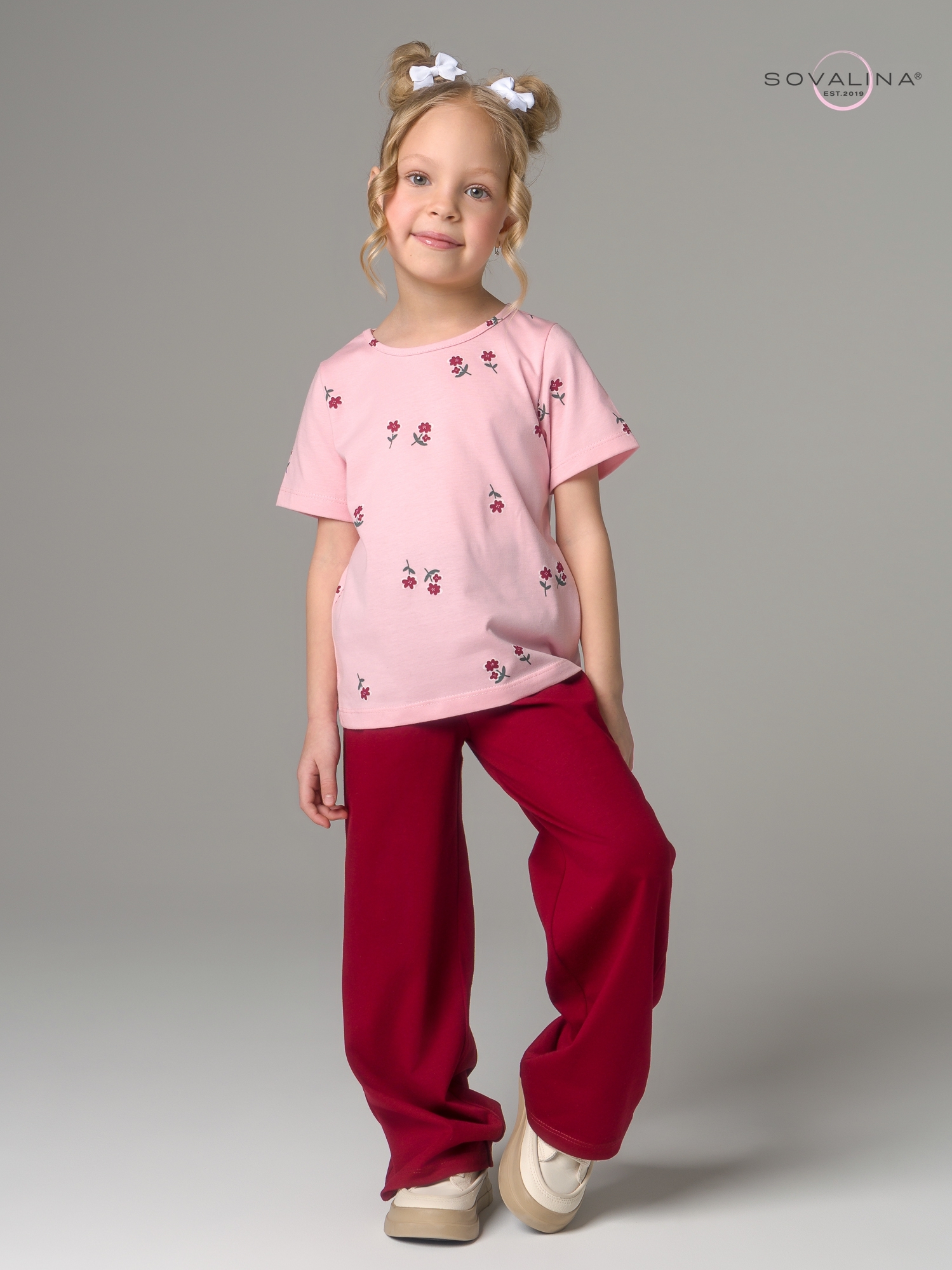 Комплект двойка TM SOVAlina для девочек, который позволит им чувствовать себя стильно и комфортно в любое время года, включая весенний и летний период. В комплект входит свободная футболка с принтом и короткими рукавами и брюки палаццо. Детский спортивный и стильный комплект подходит для садика. Широкие штаны клеш обладают свободным кроем. Хлопковая ткань и вшитая в пояс резинка создают комфорт и свободу в активностях ребенка. Эта милая футболка с расклешенными брюками и их яркий цвет придадут для девочки дополнительную индивидуальность на солнечное лето, теплую осень и отопительный сезон в помещении. Костюмчик изготовлен из высококачественного трикотажа, он хлопковый и легкий - идеальный выбор для активных игр в саду или как домашняя пижама для детей. Этот домашний костюмчик с сердечками не только функционален, но также приятен наощупь благодаря тонкому дышащему материалу. Создайте своему ребенку возможность чувствовать себя уютно, модно и стильно одновременно!