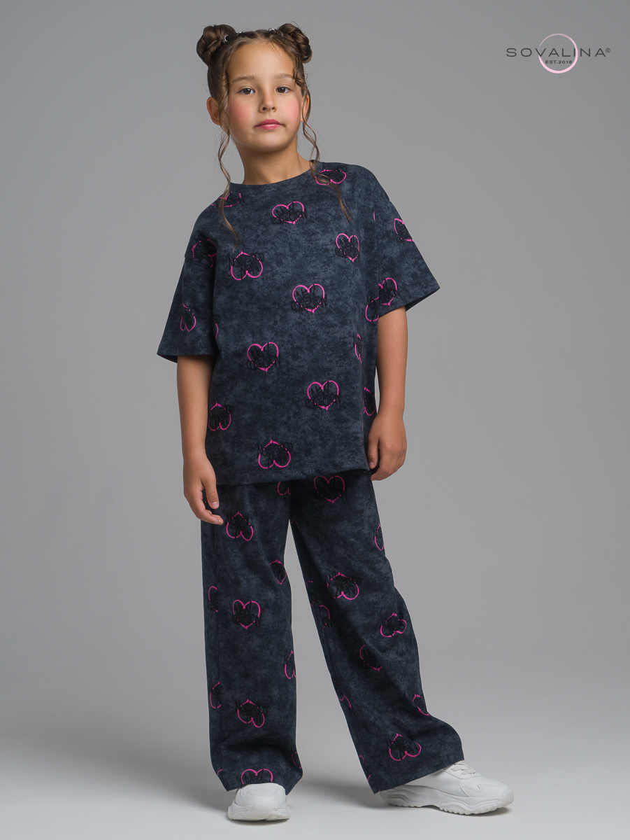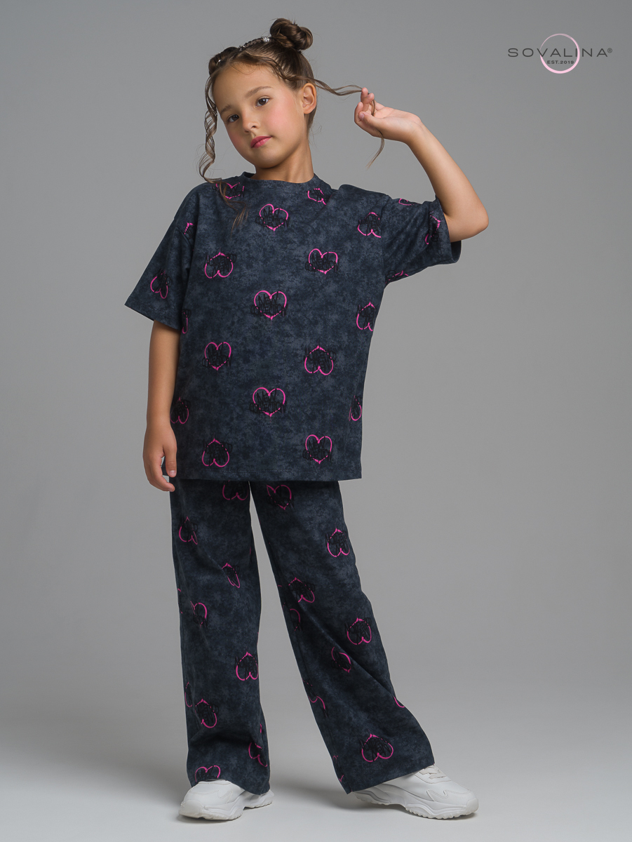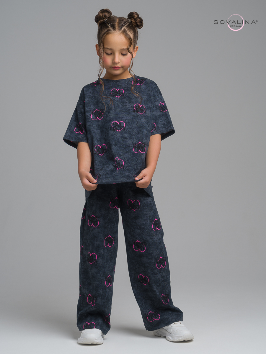 Комплект двойка TM SOVAlina для маленьких девочек, который позволит им чувствовать себя стильно и комфортно в любое время года, включая весенний и летний период. Он отлично подойдет для физкультуры, гимнастики, танцев или просто для повседневных прогулок и отдыха. В комплект входит футболка и брюки палаццо.  Широкие штаны клеш обладают свободным кроем. Хлопковая ткань и вшитая в пояс резинка создают комфорт и свободу в активностях ребенка. Эта милая футболка с расклешенными брюками и их яркий цвет придадут для девочки дополнительную индивидуальность на солнечное лето, теплую весну и отопительный сезон в помещении. Костюмчик изготовлен из высококачественного трикотажа, он хлопковый и легкий - идеальный выбор для активных игр в саду или домашняя пижама для детей. Элементы костюма можно носить как вместе, так и по отдельности.