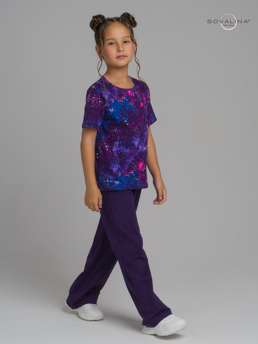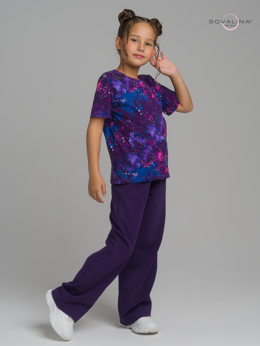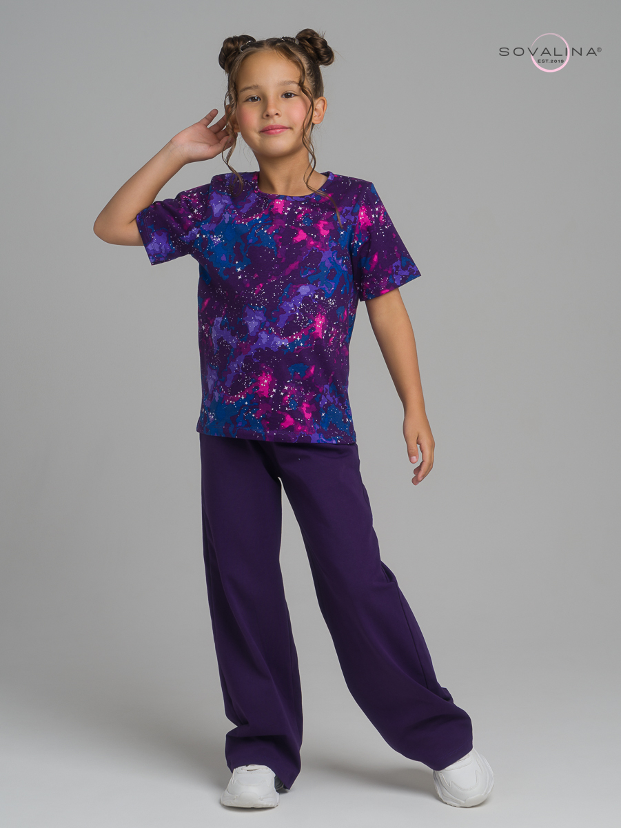 Комплект двойка TM SOVAlina для маленьких девочек, который позволит им чувствовать себя стильно и комфортно в любое время года, включая весенний и летний период. Он отлично подойдет для физкультуры, гимнастики, танцев или просто для повседневных прогулок и отдыха. В комплект входит футболка и брюки палаццо.  Широкие штаны клеш обладают свободным кроем. Хлопковая ткань и вшитая в пояс резинка создают комфорт и свободу в активностях ребенка. Эта милая футболка с расклешенными брюками и их яркий цвет придадут для девочки дополнительную индивидуальность на солнечное лето, теплую весну и отопительный сезон в помещении. Костюмчик изготовлен из высококачественного трикотажа, он хлопковый и легкий - идеальный выбор для активных игр в саду или домашняя пижама для детей. Элементы костюма можно носить как вместе, так и по отдельности.