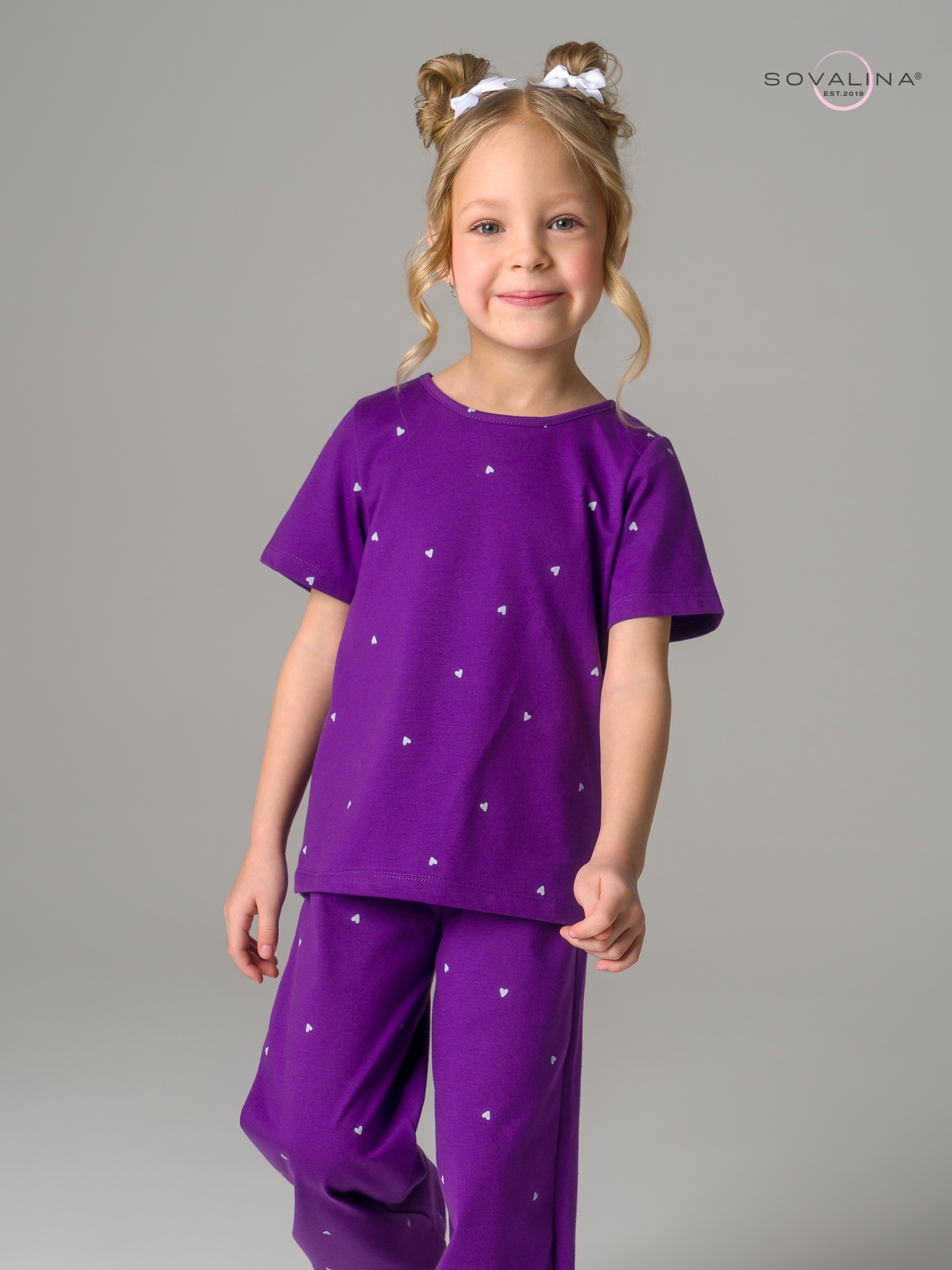 Комплект двойка TM SOVAlina для девочек, который позволит им чувствовать себя стильно и комфортно в любое время года, включая весенний и летний период. В комплект входит свободная футболка с принтом и короткими рукавами и брюки палаццо. Детский спортивный и стильный комплект подходит для садика. Широкие штаны клеш обладают свободным кроем. Хлопковая ткань и вшитая в пояс резинка создают комфорт и свободу в активностях ребенка. Эта милая футболка с расклешенными брюками и их яркий цвет придадут для девочки дополнительную индивидуальность на солнечное лето, теплую осень и отопительный сезон в помещении. Костюмчик изготовлен из высококачественного трикотажа, он хлопковый и легкий - идеальный выбор для активных игр в саду или как домашняя пижама для детей. Этот домашний костюмчик не только функционален, но также приятен наощупь благодаря тонкому дышащему материалу. Создайте своему ребенку возможность чувствовать себя уютно, модно и стильно одновременно!