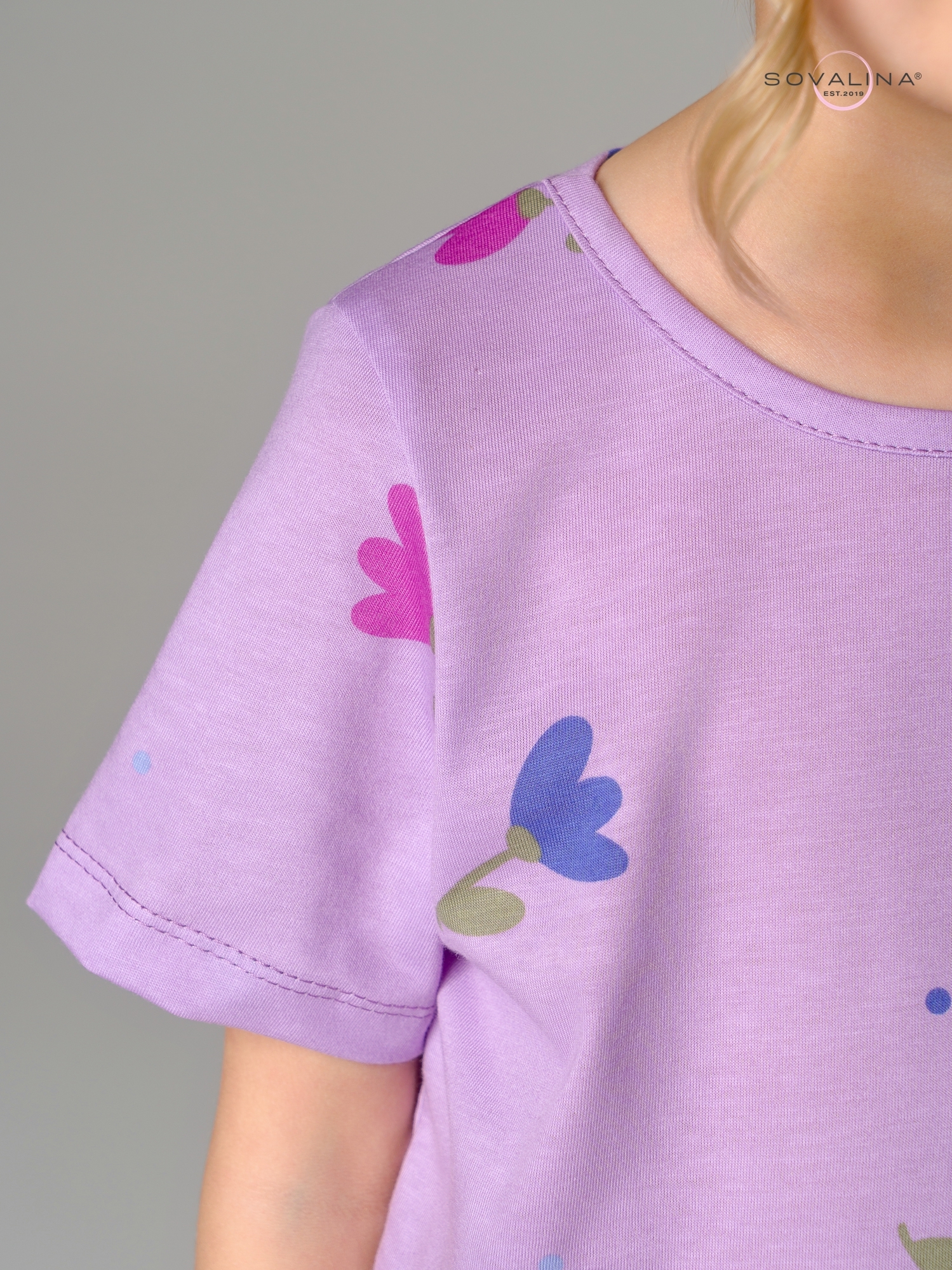 Комплект двойка TM SOVAlina для девочек, который позволит им чувствовать себя стильно и комфортно в любое время года, включая весенний и летний период. В комплект входит свободная футболка с принтом и короткими рукавами и брюки палаццо. Детский спортивный и стильный комплект подходит для садика. Широкие штаны клеш обладают свободным кроем. Хлопковая ткань и вшитая в пояс резинка создают комфорт и свободу в активностях ребенка. Эта милая футболка с расклешенными брюками и их яркий цвет придадут для девочки дополнительную индивидуальность на солнечное лето, теплую осень и отопительный сезон в помещении. Костюмчик изготовлен из высококачественного трикотажа, он хлопковый и легкий - идеальный выбор для активных игр в саду или как домашняя пижама для детей. Этот домашний костюмчик с сердечками не только функционален, но также приятен наощупь благодаря тонкому дышащему материалу. Создайте своему ребенку возможность чувствовать себя уютно, модно и стильно одновременно!