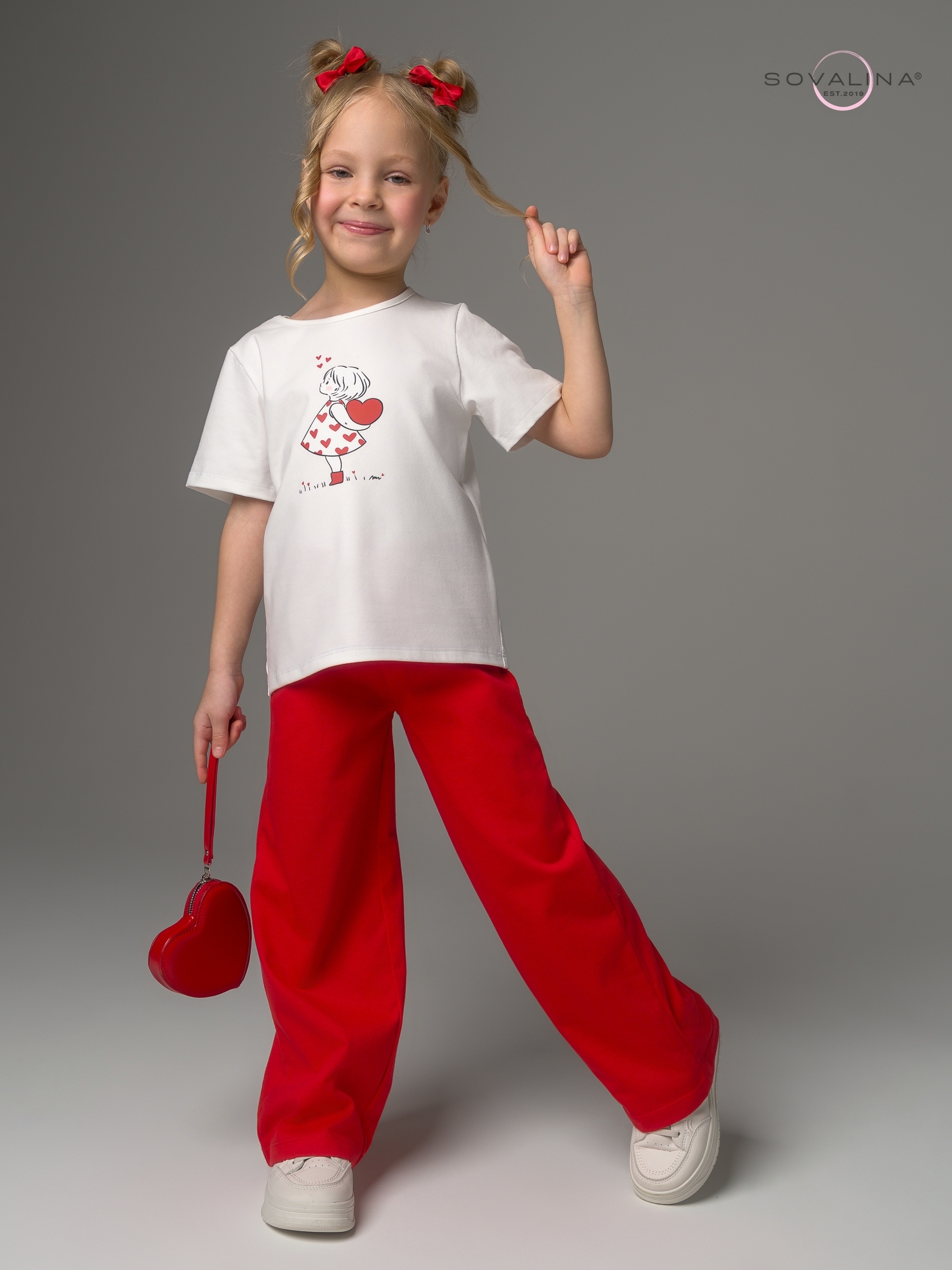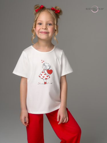 Комплект двойка TM SOVAlina для девочек, который позволит им чувствовать себя стильно и комфортно в любое время года, включая весенний и летний период. В комплект входит свободная футболка с принтом и короткими рукавами и брюки палаццо. Детский спортивный и стильный комплект подходит для садика. Широкие штаны клеш обладают свободным кроем. Хлопковая ткань и вшитая в пояс резинка создают комфорт и свободу в активностях ребенка. Эта милая футболка с расклешенными брюками и их яркий цвет придадут для девочки дополнительную индивидуальность на солнечное лето, теплую осень и отопительный сезон в помещении. Костюмчик изготовлен из высококачественного трикотажа, он хлопковый и легкий - идеальный выбор для активных игр в саду или как домашняя пижама для детей. Этот домашний костюмчик с сердечками не только функционален, но также приятен наощупь благодаря тонкому дышащему материалу. Создайте своему ребенку возможность чувствовать себя уютно, модно и стильно одновременно!
