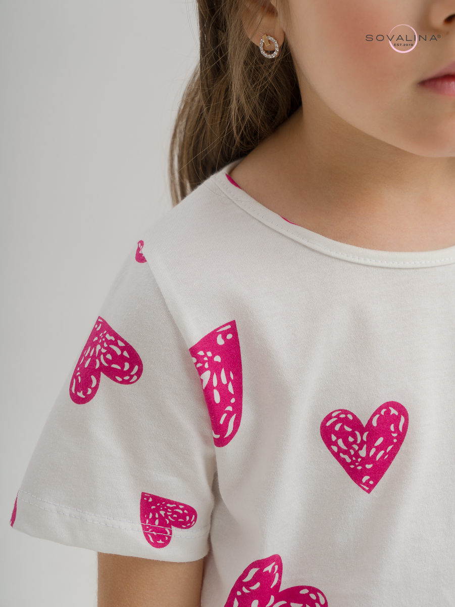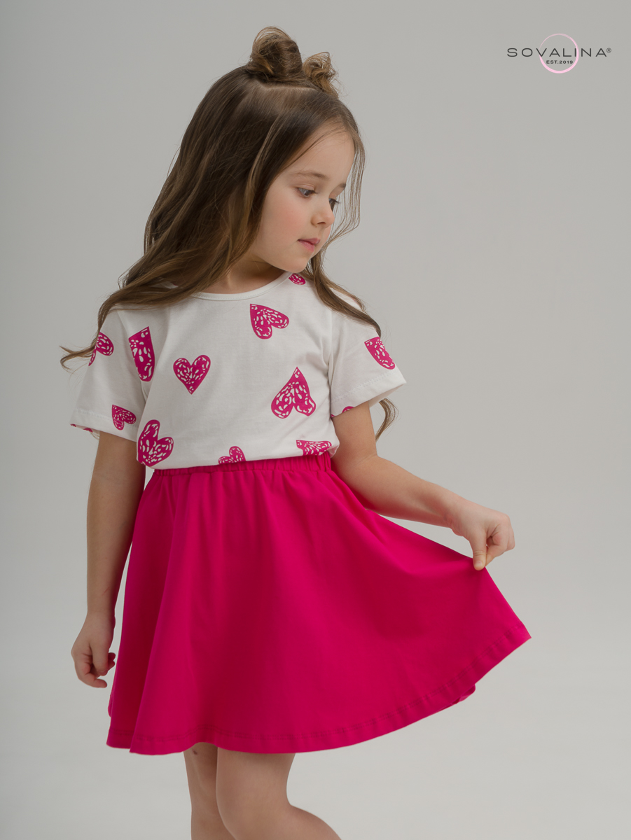 Летний трикотажный комплект для девочки ТМ SOVAlina. В костюм входит свободная футболка и широкая юбка. Отсутствие молнии и пуговиц позволит ребенку самостоятельно переодеваться. Расклешенная юбка и футболка пошиты из легкого, приятного наощупь полотна кулирной глади, материала из хлопка, в пояс юбки вшита резинка. Ткань гипоаллергенная и обладает отличной воздухопроницаемостью, благодаря чему дарит комфорт в жаркую погоду. Элементы костюма можно носить как вместе, так и по отдельности. Красивый хлопковый комплект одежды девочка сможет надеть летом на пляж, на прогулки, дома в отопительный сезон. Повод может быть любой: повседневный на каждый день, в детский сад или на дачу. Яркий, нежный принт не оставит равнодушными маленьких принцесс. Обращаем Ваше внимание, фото выполнено при студийном освещении, при естественном свете цвета могут иметь другие оттенки.