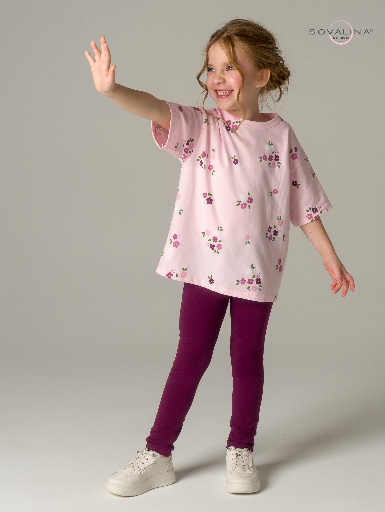 Яркий трикотажный костюм для девочки ТМ SOVAlina. Включает в себя оверсайз футболку и однотонные лосины на эластичной резинке, которая не давит на поясе. Облегченный дышащий материал высокого качества из тонкого хлопка, обеспечивает максимальный комфорт для ребенка. Детский легкий комплект двойка с коротким рукавом подойдет для летних и весенних прогулок. Нарядный и красивый костюмчик с леггинсами будет отличным выбором на утренники и повседневного посещения детского сада. Кофту и штаны можно носить как вместе так и по отдельности с другими вещами, создавая модные и стильные комплекты одежды на весну и прохладное лето.