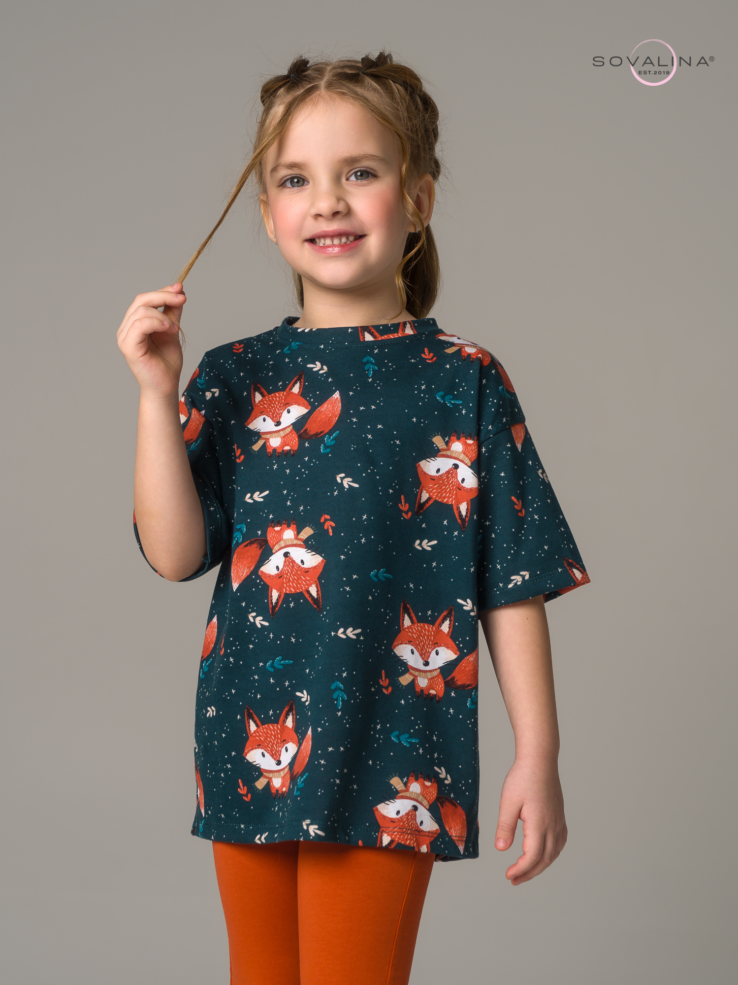 Яркий трикотажный костюм для девочки ТМ SOVAlina. Включает в себя оверсайз футболку и однотонные лосины на эластичной резинке, которая не давит на поясе. Облегченный дышащий материал высокого качества из тонкого хлопка, обеспечивает максимальный комфорт для ребенка. Детский легкий комплект двойка с коротким рукавом подойдет для летних и весенних прогулок. Нарядный и красивый костюмчик с леггинсами будет отличным выбором на утренники и повседневного посещения детского сада. Кофту и штаны можно носить как вместе так и по отдельности с другими вещами, создавая модные и стильные комплекты одежды на весну и прохладное лето.