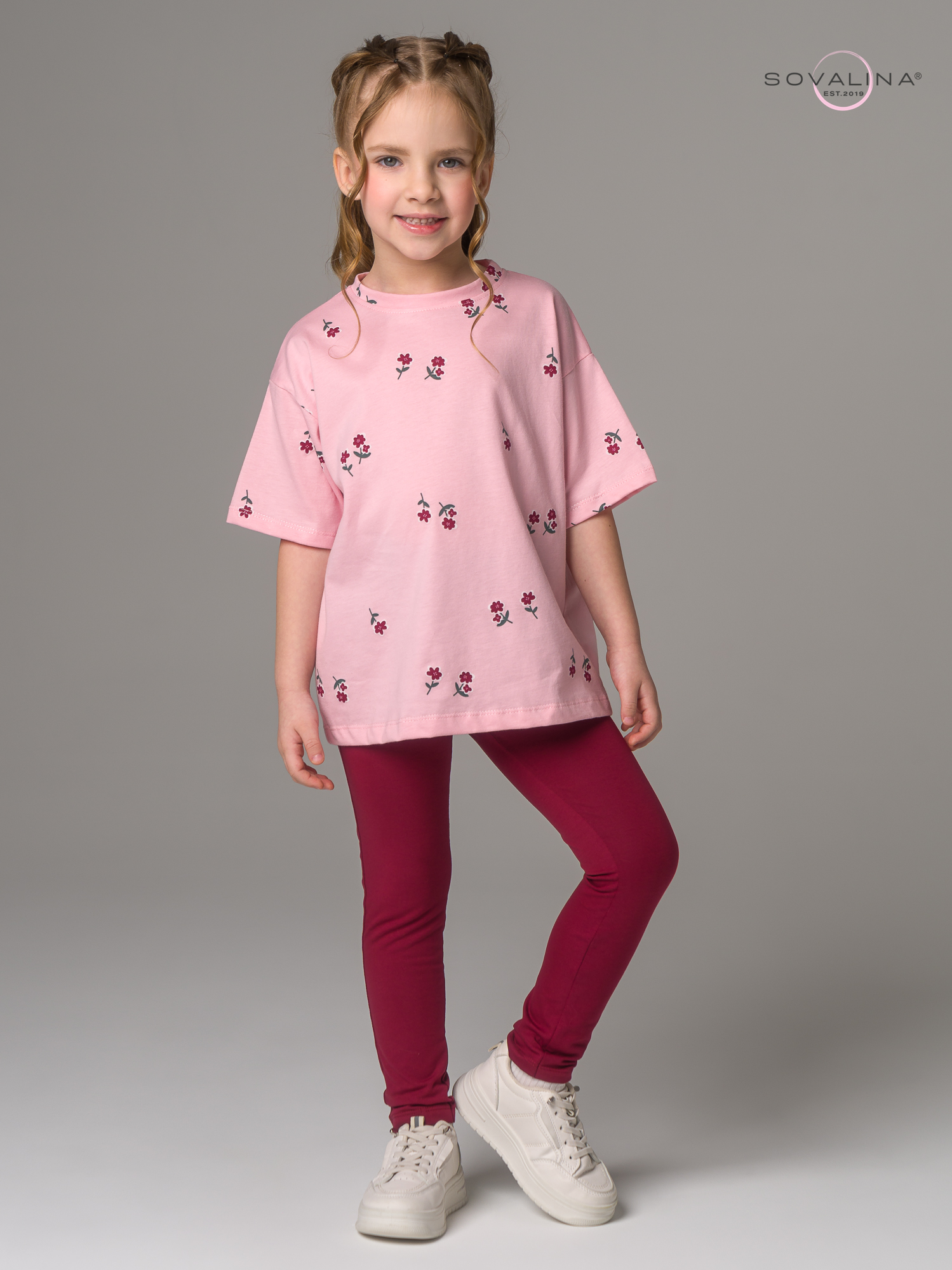 Яркий трикотажный костюм для девочки ТМ SOVAlina. Включает в себя оверсайз футболку и однотонные лосины на эластичной резинке, которая не давит на поясе. Облегченный дышащий материал высокого качества из тонкого хлопка, обеспечивает максимальный комфорт для ребенка. Детский легкий комплект двойка с коротким рукавом подойдет для летних и весенних прогулок. Нарядный и красивый костюмчик с леггинсами будет отличным выбором на утренники и повседневного посещения детского сада. Кофту и штаны можно носить как вместе так и по отдельности с другими вещами, создавая модные и стильные комплекты одежды на весну и прохладное лето.