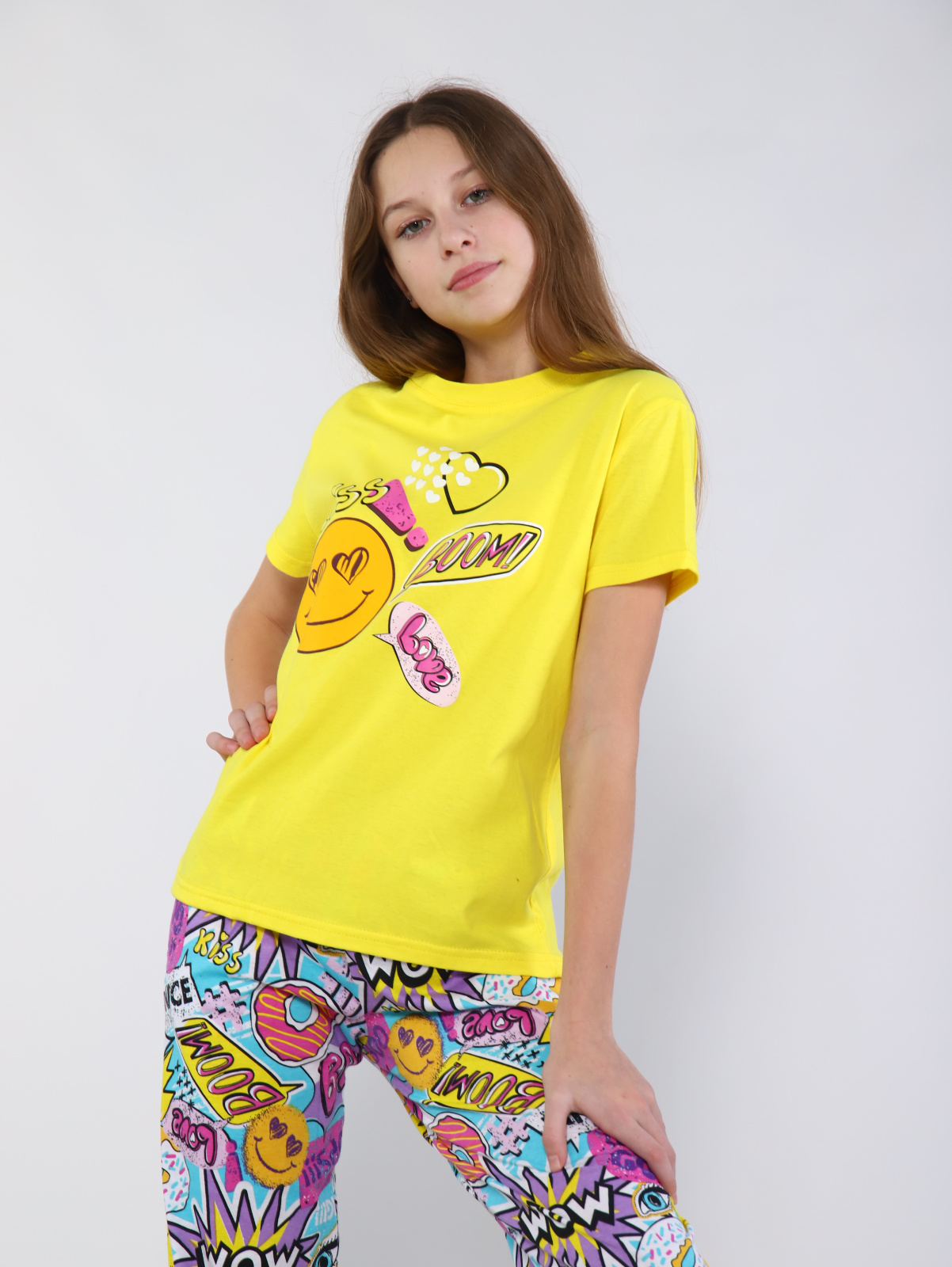 Костюм для девочек-подростков отлично подойдет в качестве домашнего комплекта, пижамы. Беспроигрышное сочетание брюк-джоггеров с укороченной футболкой oversize. Подростковый комплект с рисунком сшит из хлопкого трикотажа. По-летнему яркий и сочный костюм для самых модных девчонок. Укороченная майка с принтом в сочетании с брюками прямого кроя, брючины внизу на резинке, создаст стильной образ, удобство и комфорт. Oversize - футболка свободного кроя универсальна, подойдёт девушкам любой комплекции. Топ можно носить с спортивками, лосинами, легинсами, кюлотами, шортами. Удобный, комфортный, натуральный комплект, обеспечивает свободу движений. Повседневный костюм хорошо подойдет для прогулок, дома, отдыха, детского лагеря, санатория, отпуска, туризма, походов, путешествий, занятий спортом, для подарка. Размеры: 140, 146, 152, 158, 164.Будем рады, если Вы оставите отзывы о наших моделях одежды.Учтём Ваши пожелания!