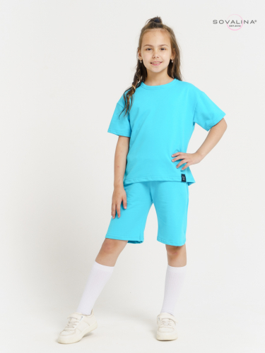 Костюм  российского бренда SOVAlina выполнен из футера высшего качества,  хлопок с добавлением небольшого количества лайкры для повышения износостойкости и эластичности ткани.