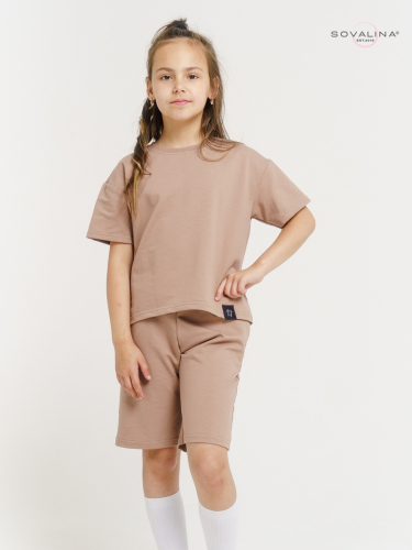 Костюм  российского бренда SOVAlina выполнен из футера высшего качества,  хлопок с добавлением небольшого количества лайкры для повышения износостойкости и эластичности ткани.