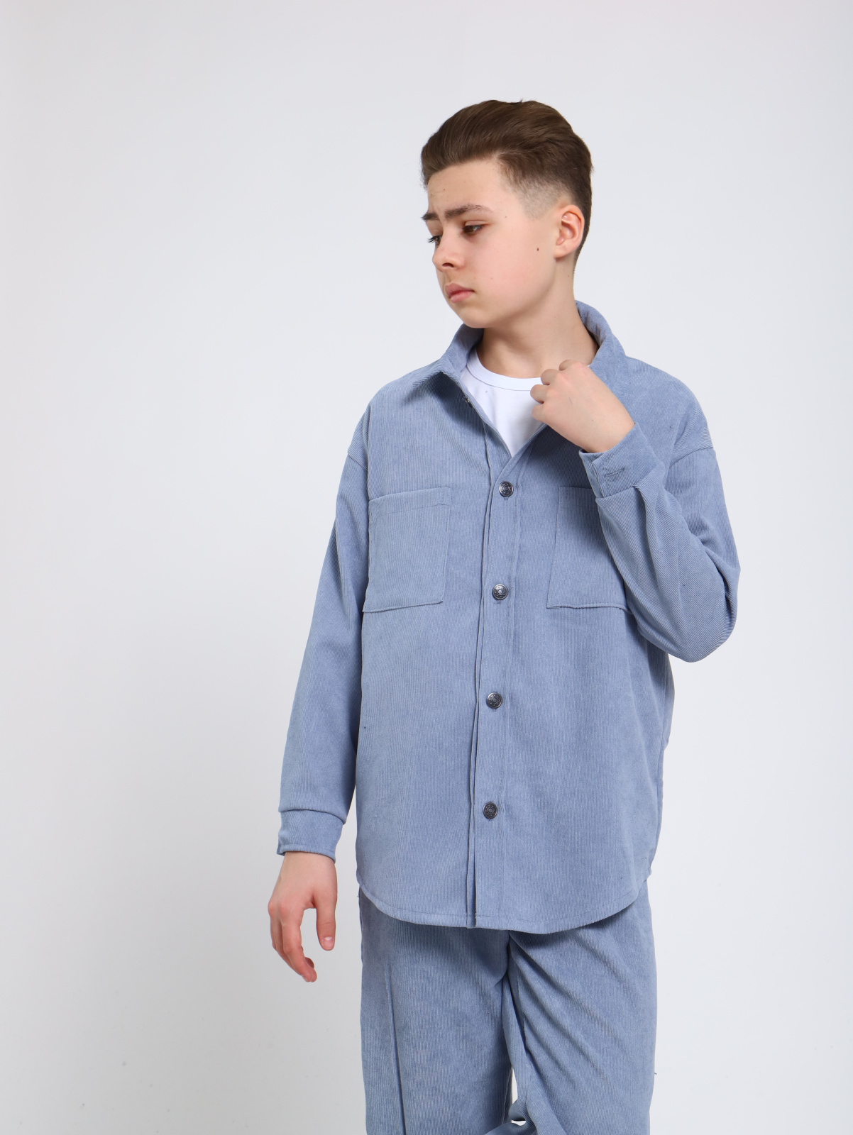 Модный подростковый вельветовый костюм в монохромной гамме для мальчиков и девочек средней и старшей школы. Этот повседневный детский костюм сшит из мягкой комфортной вельветовой ткани в мелкий рубчик. Стильный комплект в стиле спортшик состоит из джоггеров спортивного кроя и рубашки модного стиля оверсайз (oversize) с нагрудными карманами. Рубашка большого объемного силуэта так любимого подростками и молодежью, низ полукруглой формы, вместительные карманы на груди, удобный мягкий ворот, красивые металлические пуговицы на планке. Брюки-джоггеры свободного силуэта с поясом на резинке, низ брюк оформлен на резинке, боковые отрезные кармашки. Костюм подходит для весенних прогулок , прохладных летних вечеров, комфортен в любое время в помещении. Рубашка и брюки отлично используются как самостоятельные изделия для комплектования интересных образов. Костюмчик-двойка подходит для школы, повседневной носки, а также в качестве нарядного комплекта.