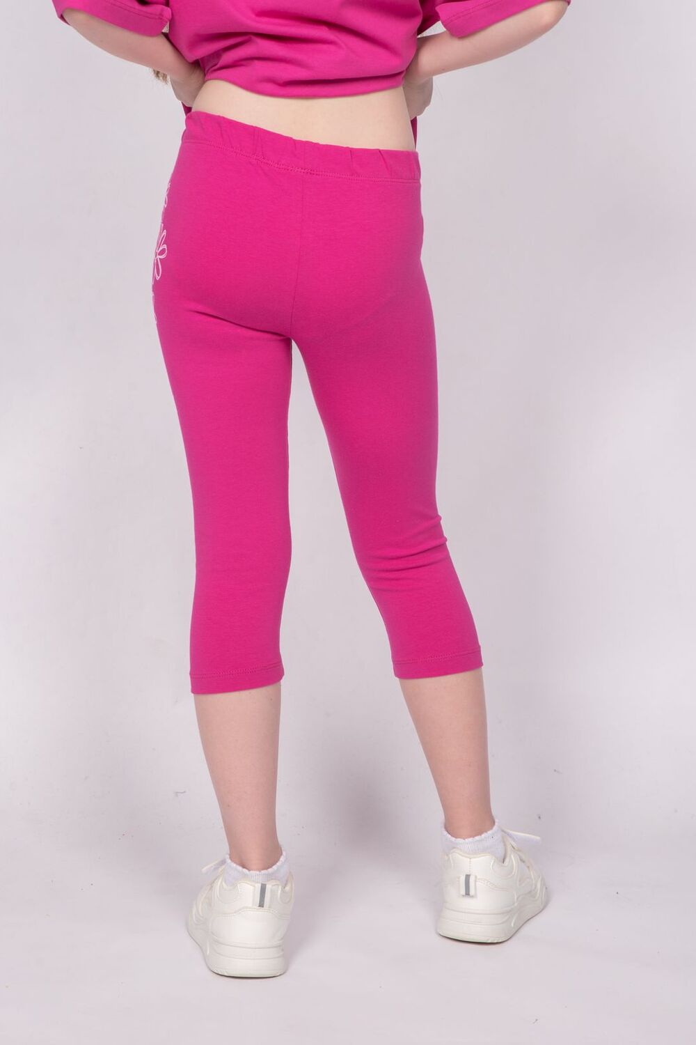 Бриджи для девочки прилегающего силуэта из гладкокрашеного полотна. Пояс цельнокроенный, с эластичной тесьмой внутри, закрепленной в шов. Низ бридж обработан швом в подгибку. На передней половинке бридж принт радужный глиттер. Цвет: фуксия;сиреневый; Материал: кулирка;кулирка; Состав: 92% хлопок 8% эластан.