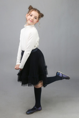 Водолазка для девочки приталенного силуэта с втачным длинным рукавом. Горловина круглая, обработана воротником-стойкой из кулирки, в цвет изделия. Низ изделия и рукавов обработан швом в подгибку Цвет: кремовый;нежно-розовый; Материал: кулирка;кулирка; Состав: 95% Хлопок, 5% Эластан.