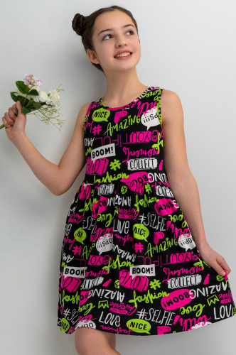 Яркое летнее платье с принтом влюбляет в себя с первого взгляда. Легкое платье для девочки и девочки-подростка выполнено из хлопкового трикотажа, идеального для жарких дней.