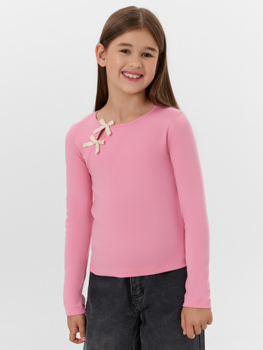 Лонгслив для девочек розовый с бантиками