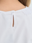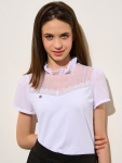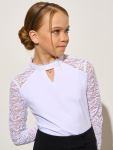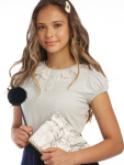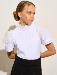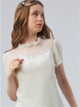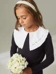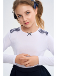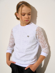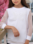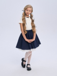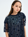 Платье для девочки двойное А-образного силуэта, средней длины.Нижнее платье из кулирки с лайкрой, без рукавов, с круглым вырезом горловины. Полочка декорирована принтом. Верхнее платье из сетки,с рукавом длиной до локтя. По низу рукавов и низу изделия пришита оборка.