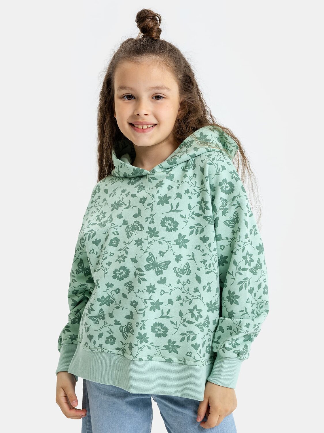 Комфортное расслабленное худи для девочек. Выполнено из легкого трикотажного футера. Прямой силуэт, длинные рукава на широких манжетах, уютный капюшон – ничего лишнего. Особый комфорт дарит спущенная линия плеча. Девочке наверняка понравится оформление этого худи.