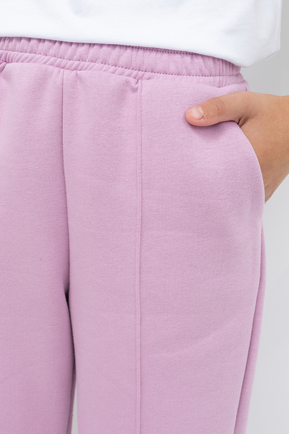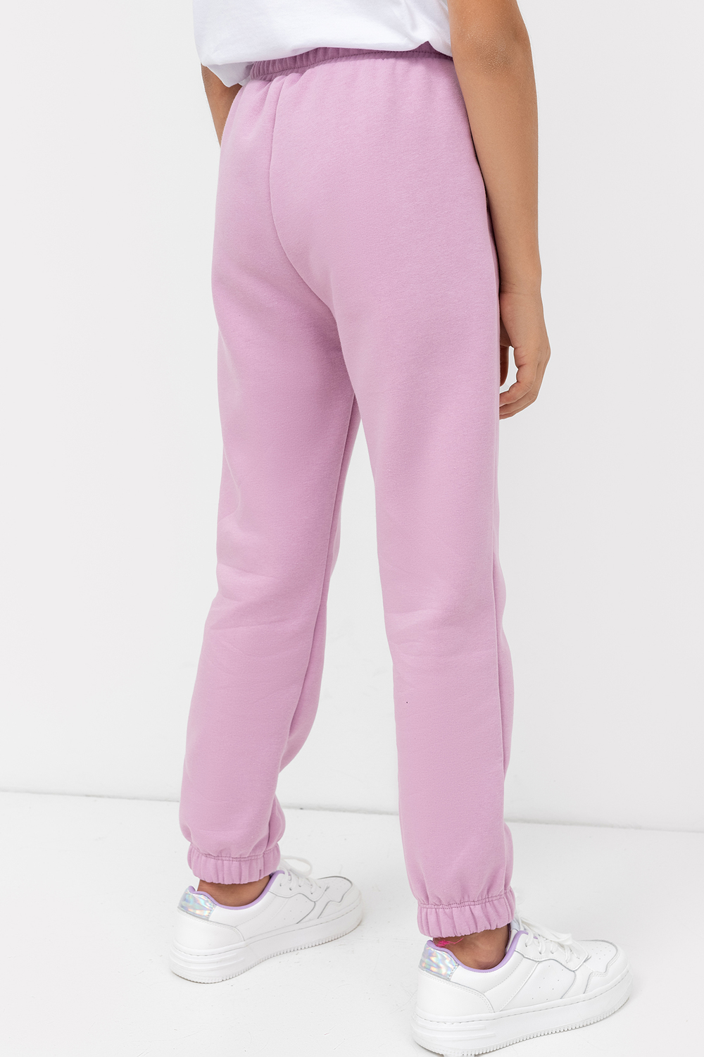 Комфортные брюки-джоггеры из трикотажного футера с подчесом для девочек. Силуэт свободный, на передних половинках обработаны карманы с наклонным входом. Пояс с эластичной тесьмой внутри. Низ штанин с эластичной тесьмой, отвернут. Отличная модель для девочки! Цвет: лаванда; Материал: футер 3-х нитка с начесом;футер 3-х нитка с начесом; Состав: 30% полиэстер, 70% хлопок.