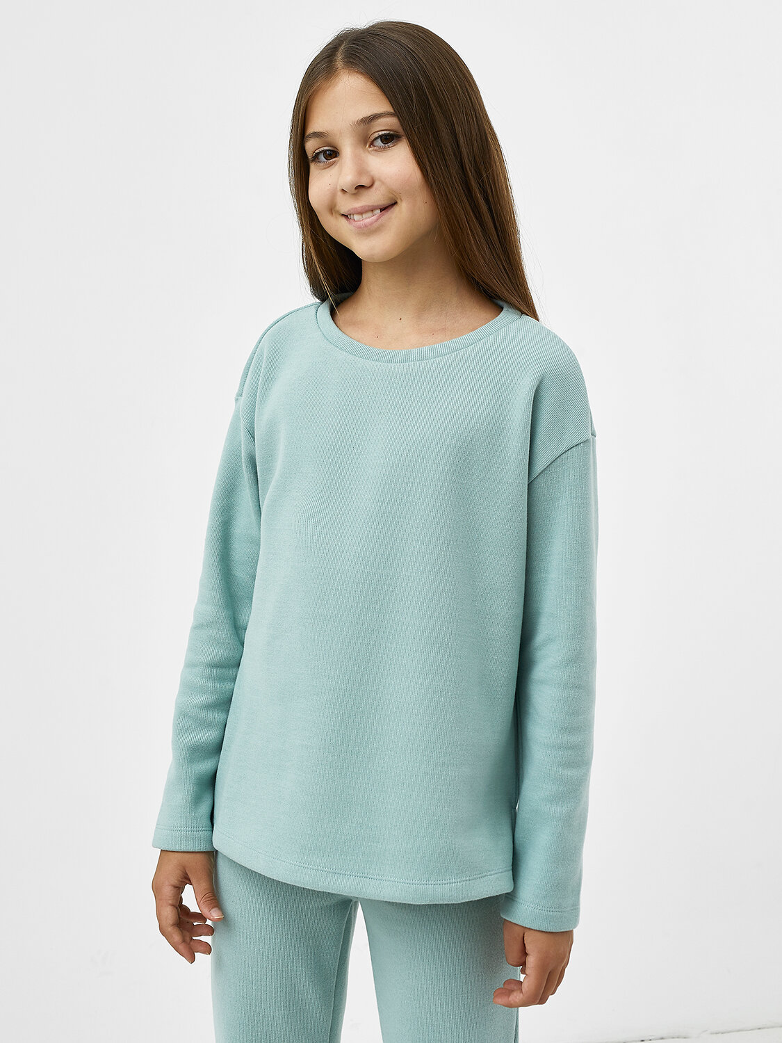 Специально для девочек! Джемпер из трикотажного селаника – невероятно нежного и приятного к телу полотна. Силуэт прямой, длина до середины бедер, рукава длинные. Спущенная пройма дарит особый комфорт. Нижние части боковых швов – с небольшими разрезами. Именно такой джемпер вы искали!