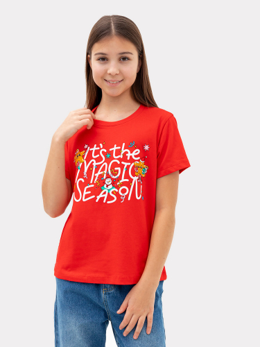 Модная футболка для девочек, выполненная из хлопковой трикотажной кулирки. Силуэт прямой. Перед и спинка без швов и рельефов. Рукава короткие, вырез классический – круглый, не глубокий. Стильная футболка с ярким дизайном!