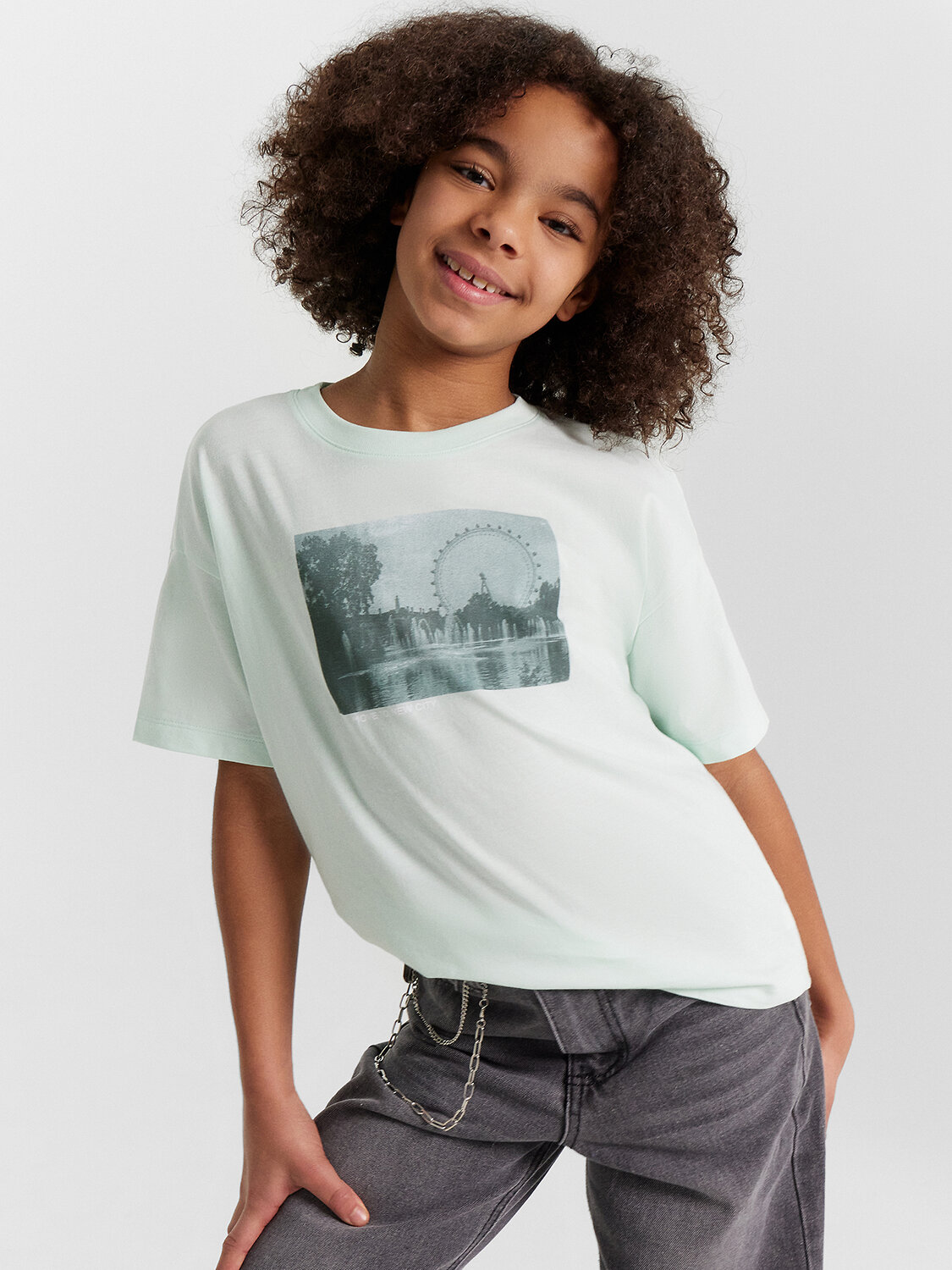Футболка из трикотажного полотна кулирного переплетения. Силуэт свободный, длина до середины бедра. Рукава короткие, горловина круглая. Дизайн футболки наверняка понравится вашей моднице!